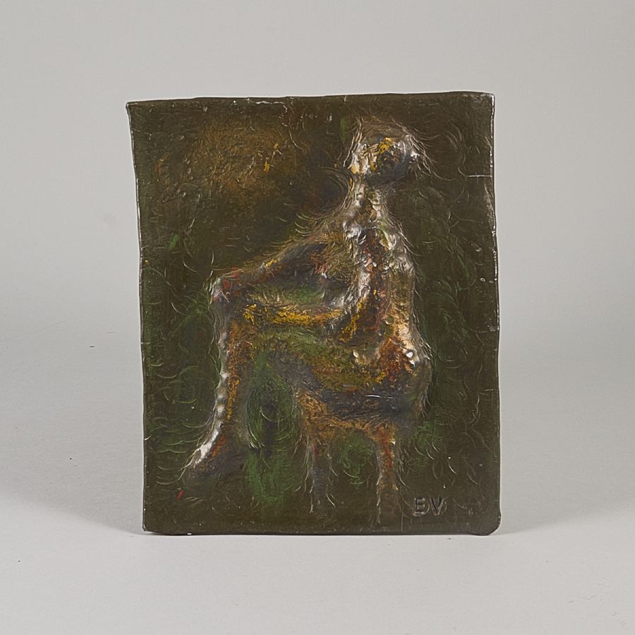 Sittande kvinna, Monogramsignerad EV, bronserad bly, oramad, 23x19 cm