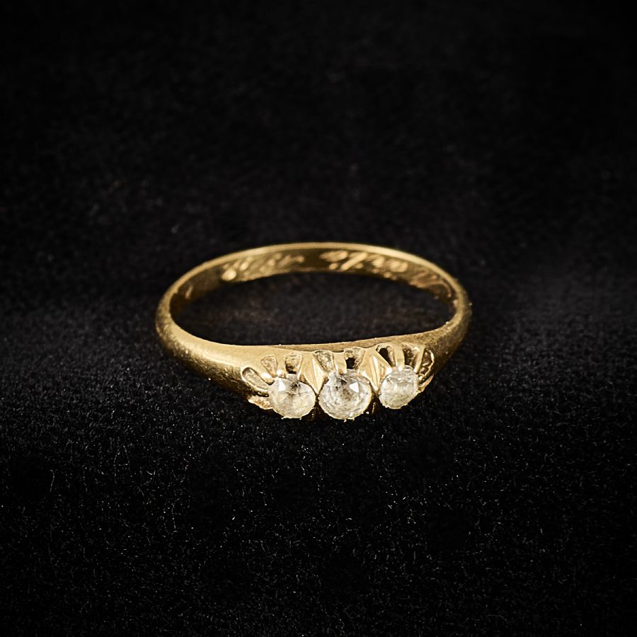 18k guld, 3 st oäkta stenar. Vikt: 2. 4 g