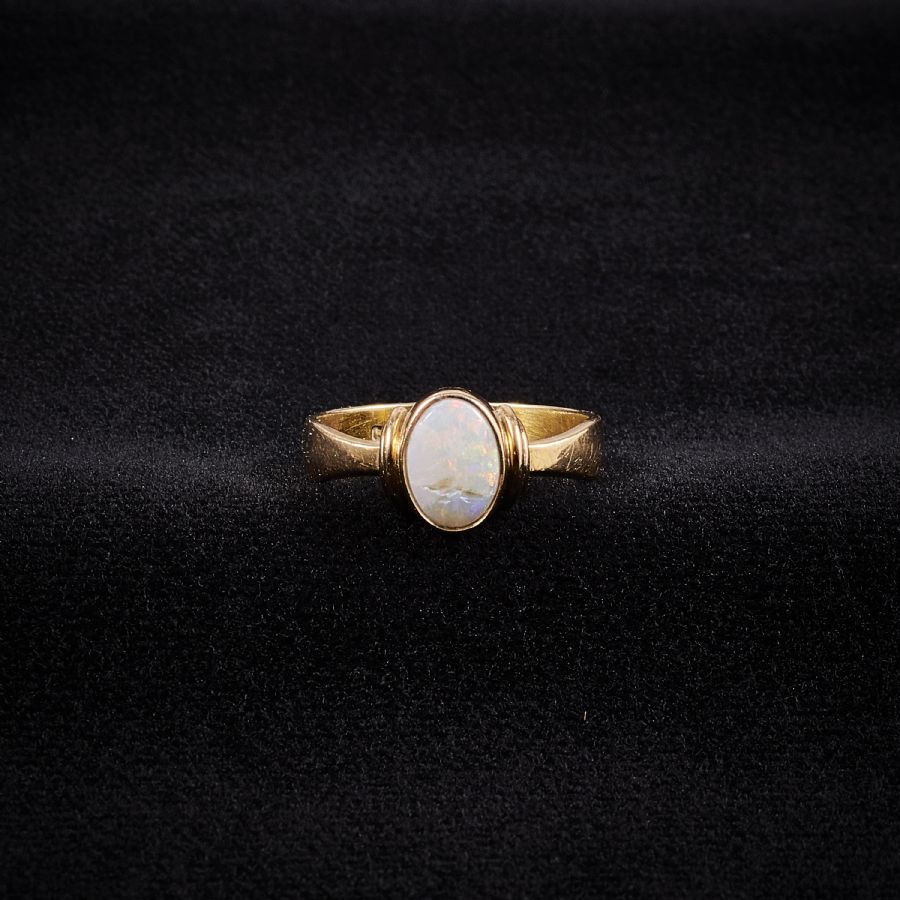 18k guld. Vikt: 3,7g. Med Opal, storlek: 17½, med etui.