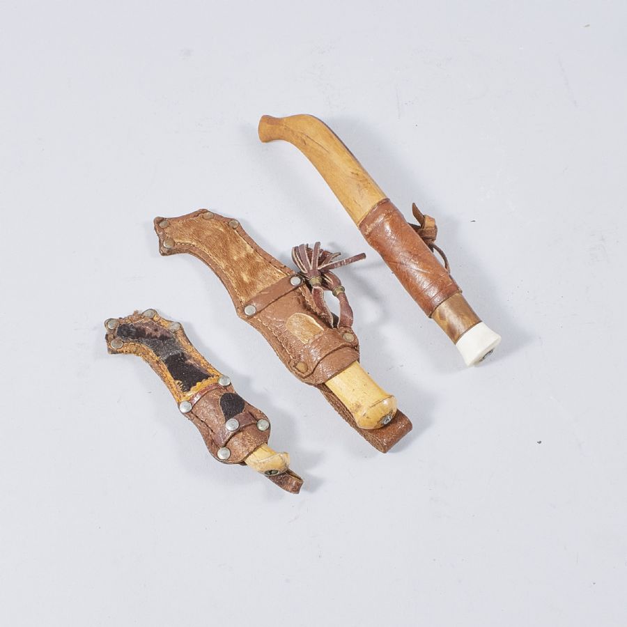3 st. Med fordral i skinn och trä, Längd: 14-23cm