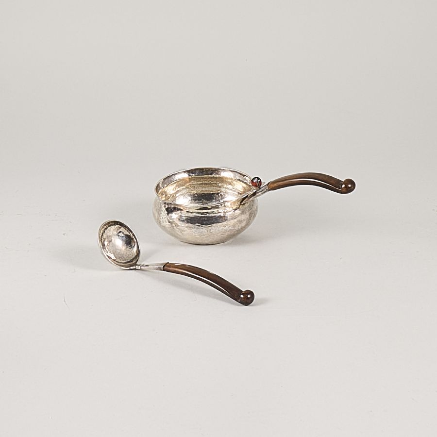 + ladle, silver, sterling. Length: 20-26, wooden handle, weight: 200 gr ca brutto,
