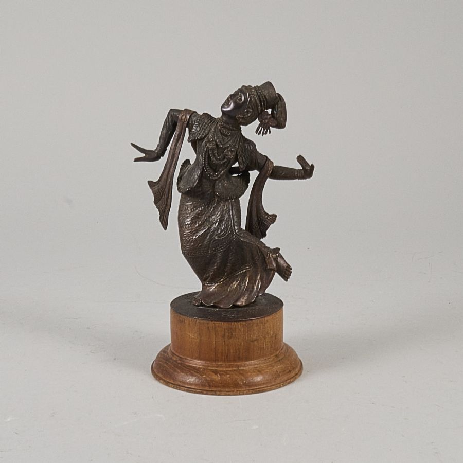 Dansande kvinna, omkring 1900, metall, träsockel. Höjd: 17 cm