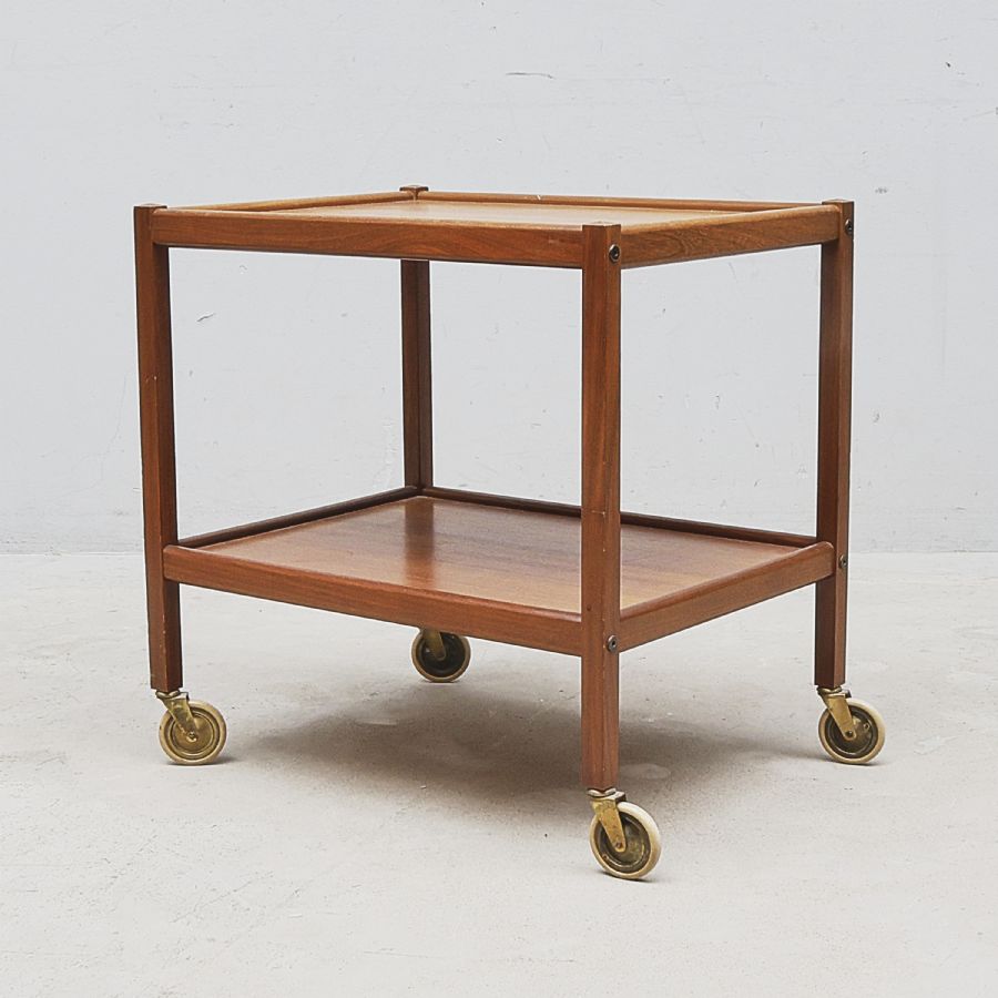 på trissor, två hyllor, teak. Bredd: 62 cm, bredd: 47 cm, höjd: 63 cm