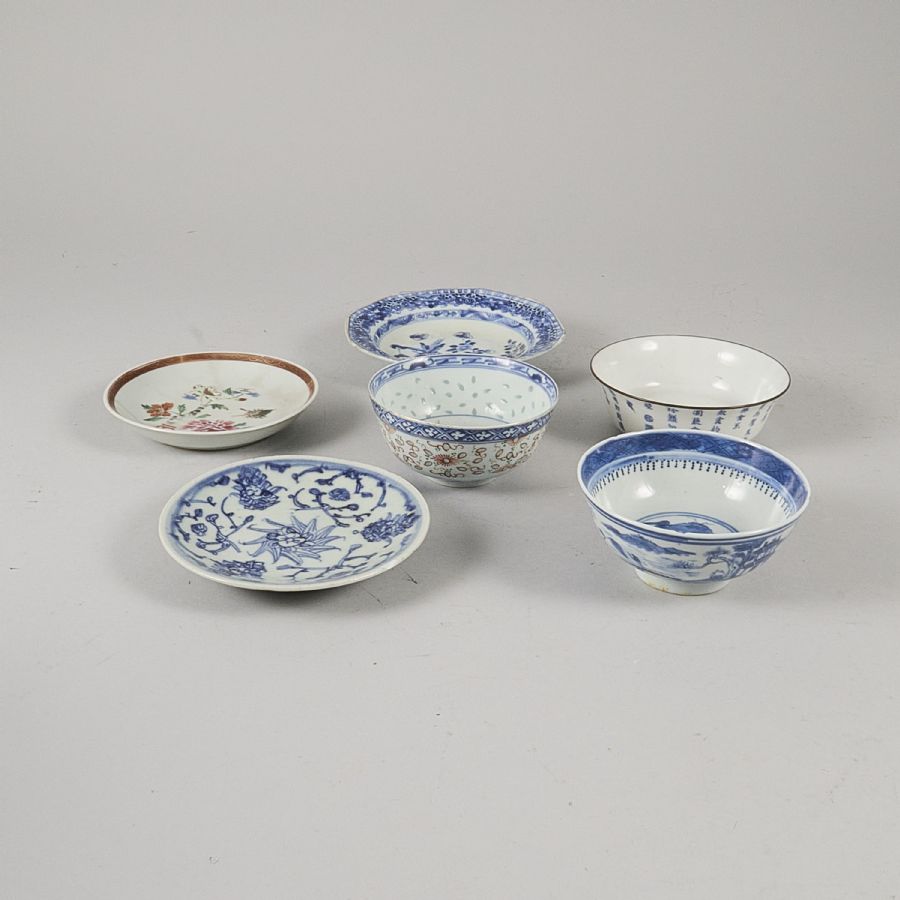 + skålar + flaska, 6 delar, Kina, Olika åldrar. Di..//
