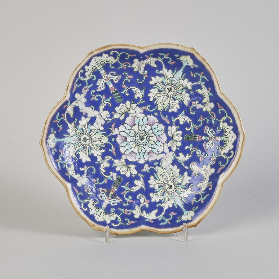 Kina, blå dekor. Diameter: 20 cm, höjd: 5 cm