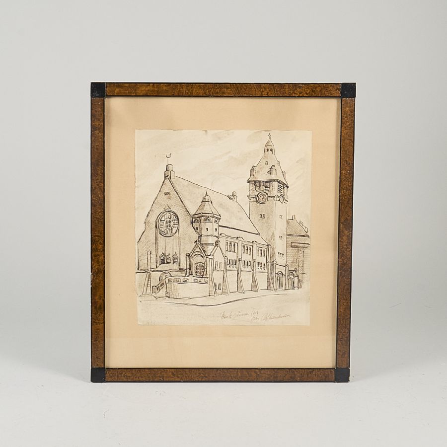 matteuskyrkan, Stockholm, bladets mått: 27x24 cm, yttermått inklusive ram: 42x37 cm