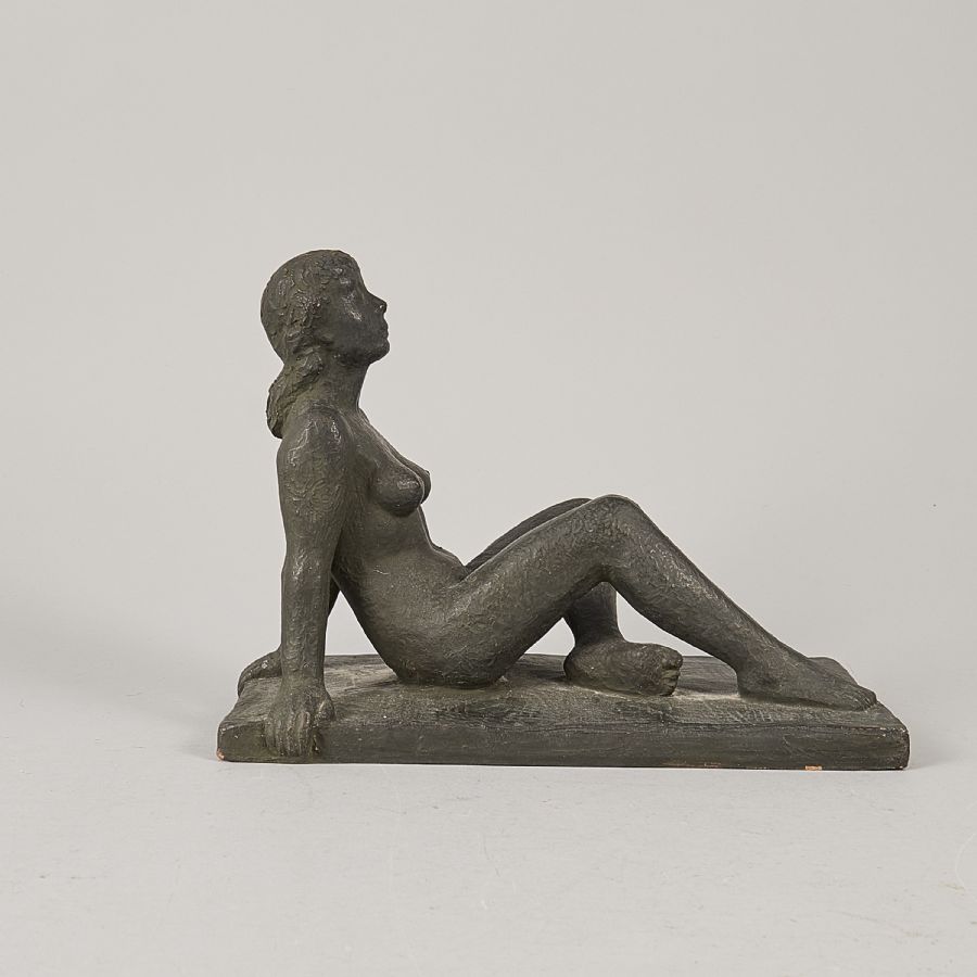Åke Falk. Signed, dated -55, ceramics, sittande kvinna. Length: 26 cm, height: 20 cm,