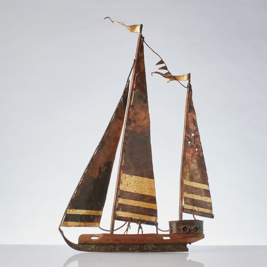 KG Petersson, metall, segelbåt. Höjd: 60. Längd: 36 cm