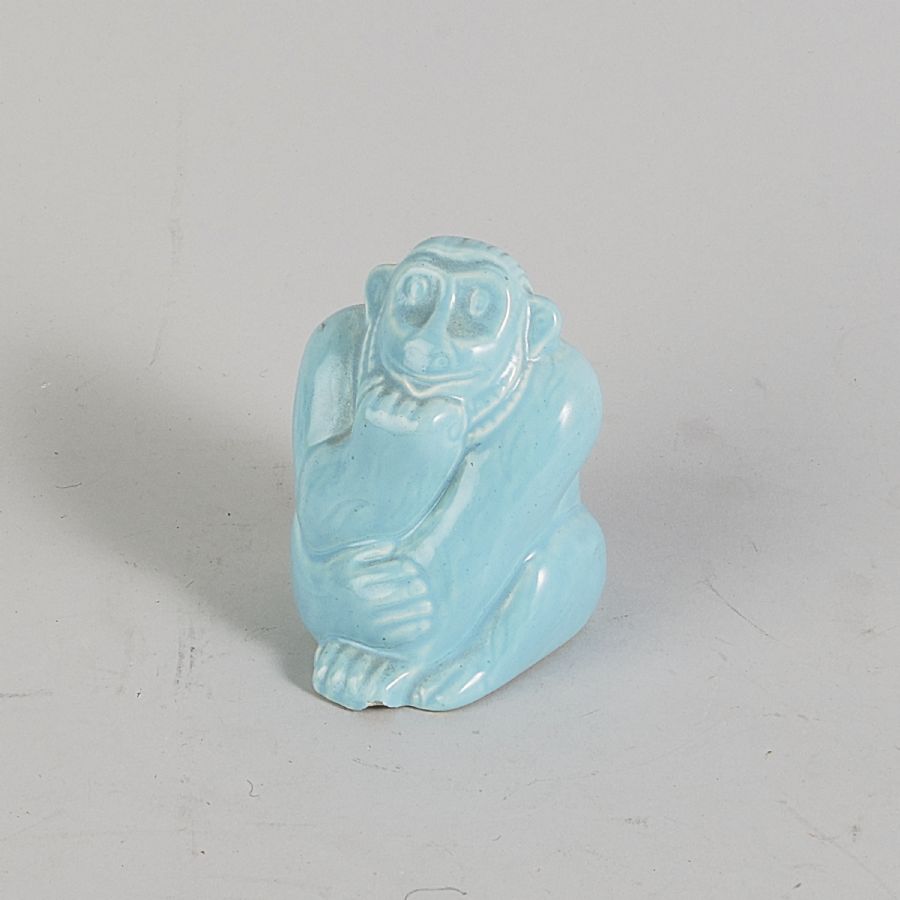 Skulptur, Apa, Gustavsberg, glaserad stengodslera. Höjd: 10 cm