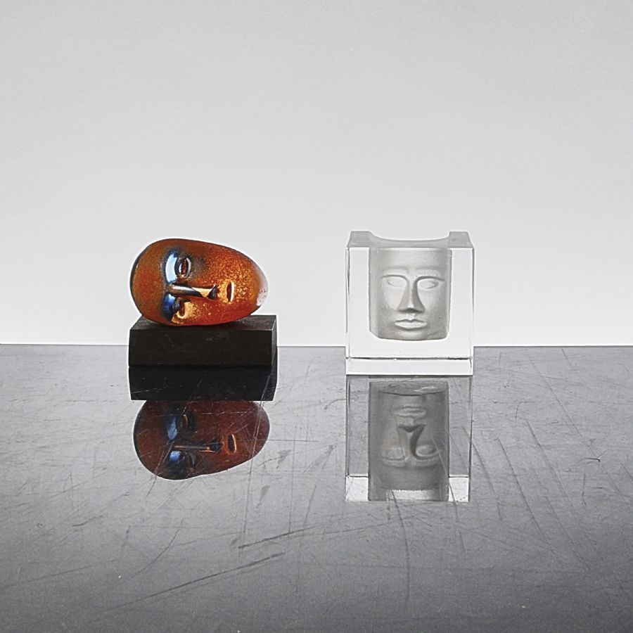 Skulpturer, 2 st, Kosta, Signerade. Höjd: 7 cm