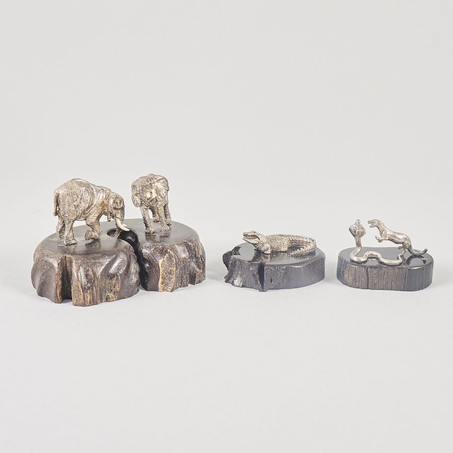 3 st, Mavros (1954), silver / trä. Djur. Längd: 5,5-10, höjd: 3-6 cm