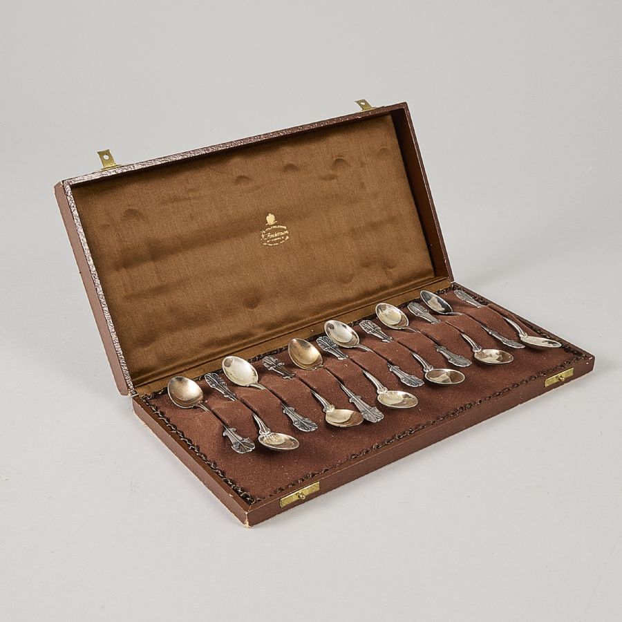 12 st, silver, GAB Guldsmedsaktiebolaget. Längd: 9,5 cm, vikt: 100 gr ca