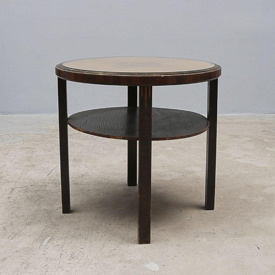 1930-tal, Intarsia, skiva av glas, diameter: 60, höjd: 57 cm