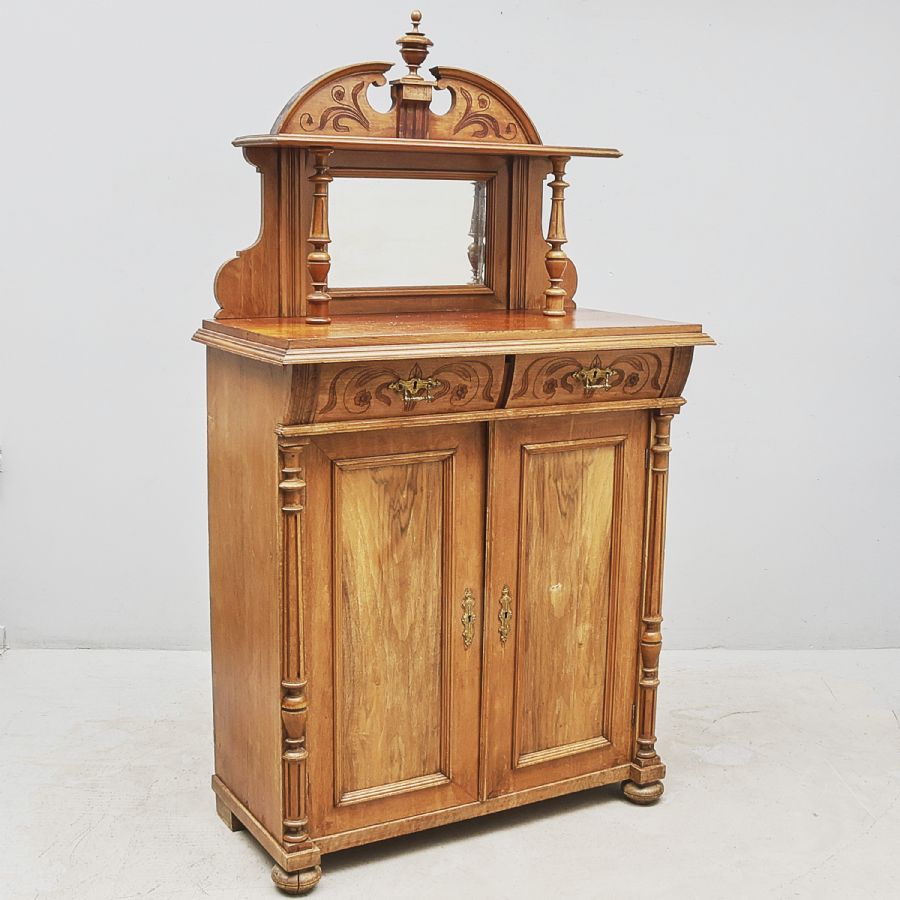 around year 1900, Ett dörrpar bakmliggande hyllplan, två lådor. Width: 102 cm, width: 51 cm, height: 184 cm,