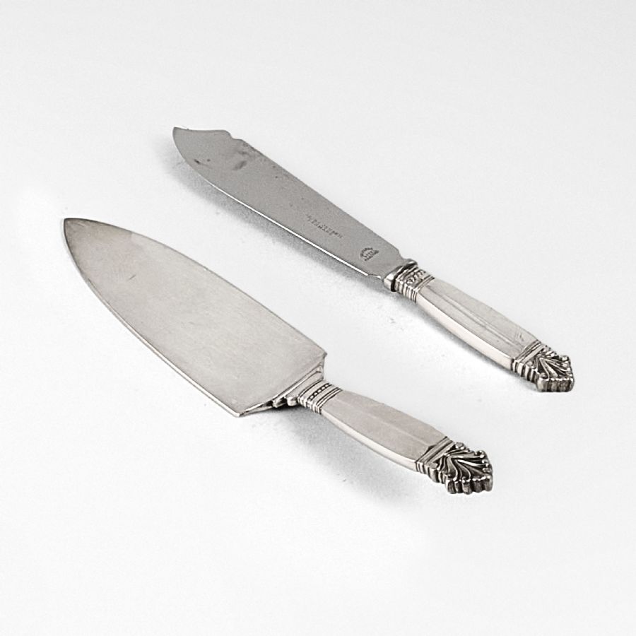 2 st, Johan Rohde, "Dronning" / "Acanthus", Georg Jensen, Danmark. Silver, en med blad i rostfritt stål. Längd: 22-24 cm, bruttovikt: 180 g