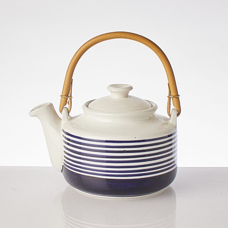 TEAPOT, Kobolt, Gustavsberg, lanserades 1958, flintgods, blå dekor på vit botten. Längd: 19,5 cm. Höjd: 20 cm