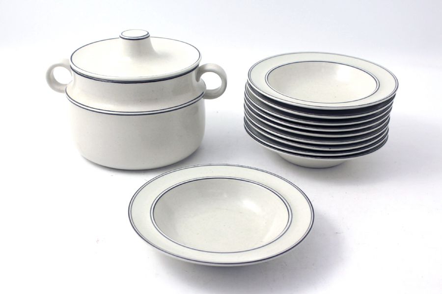 Soppterrin, + sopptallrikar, 11 del. "Birka". Stig Lindberg (1916-1982), Gustavsberg