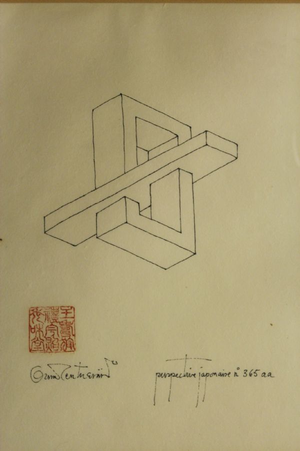 Tusch, Oscar Reutersvärd (1915-2002). Perspectiv Japonaise, motivets mått: 30 x 21