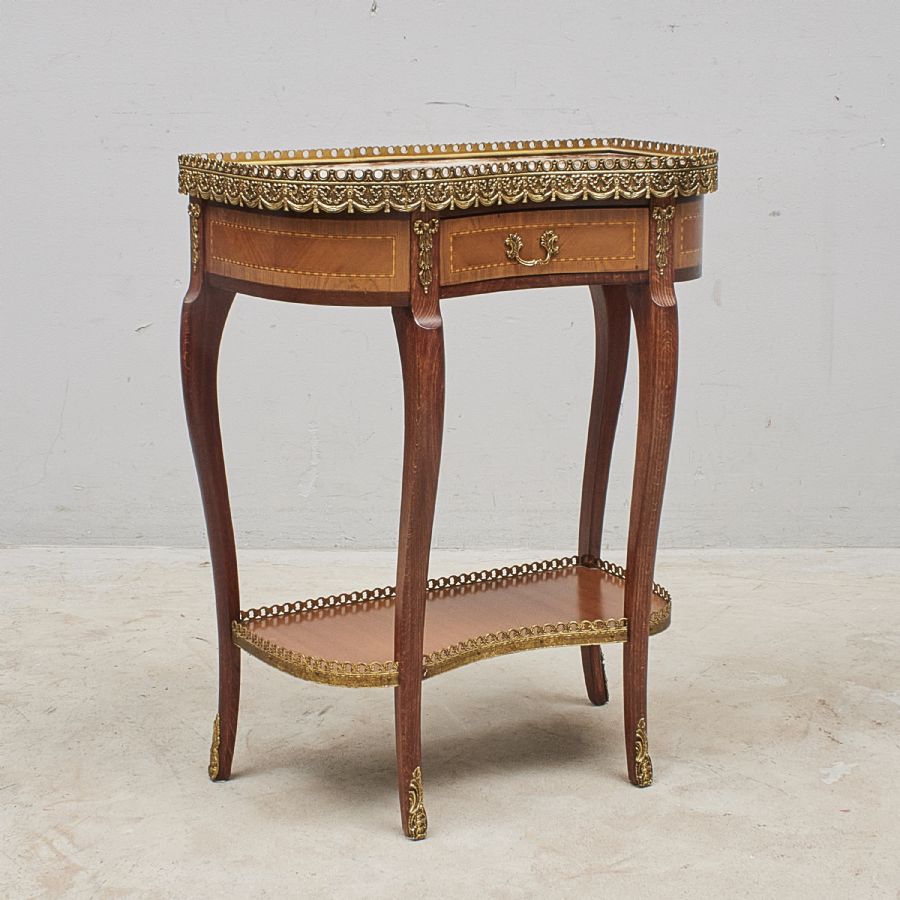 Louis XVI-stil, med låda och mässingsbeslag. Marmorskiva. Bredd: 60 cm. Djup: 33 cm. Höjd: 76 cm