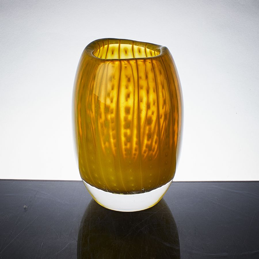 Mona Morales-Schildt (1908-1999), Sweden. Kosta, glas med dekor i gult, 920529 46475. Height: 19 cm,