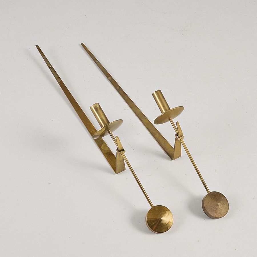 one pair, Pierre Forsell (1925-2004), Sweden. Skultuna, "Pendel", brass, labeled, height: 48 cm,