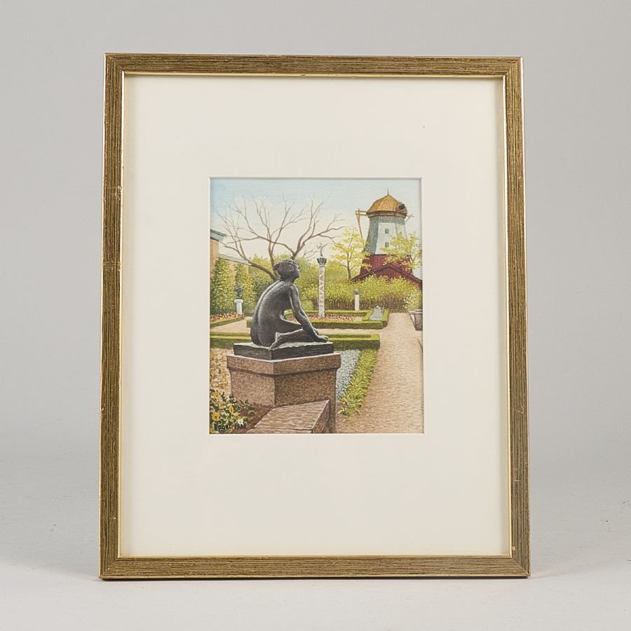 Åke Vogel, Waldemarsudde. Signerad, daterad 1986. Akvarell, bildmått: 15x13 cm, yttermått inklusive ram: 32x26 cm