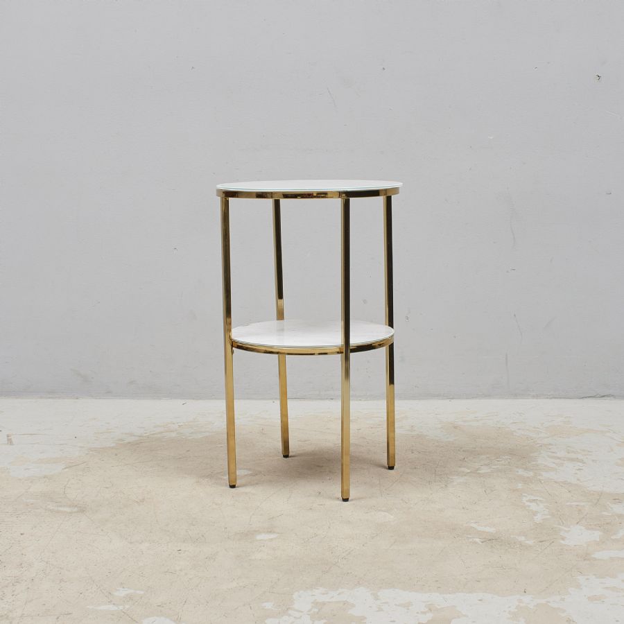stomme i gulmetall, två bordsskivor, härdat glas ..//