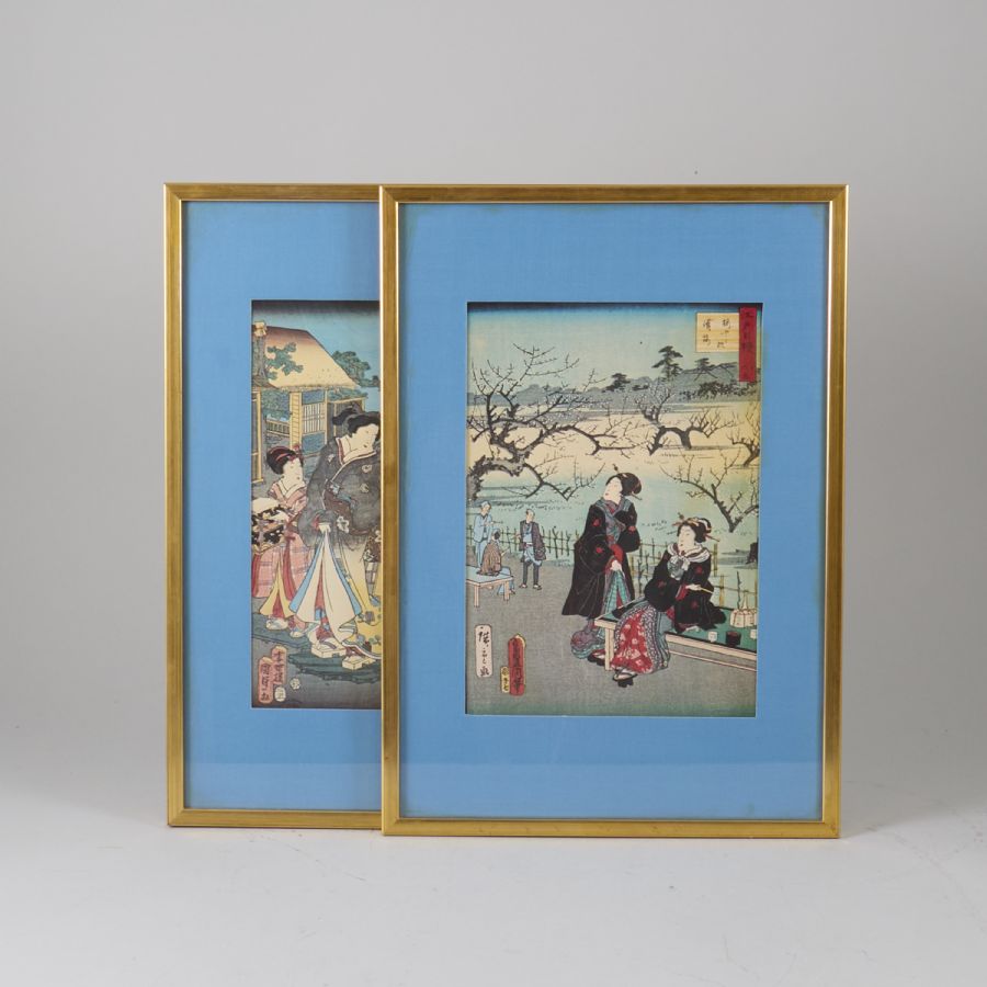 2 st, Japan. Bildmått: 30x21 cm, yttermått inklusive ram: 48x34 cm
