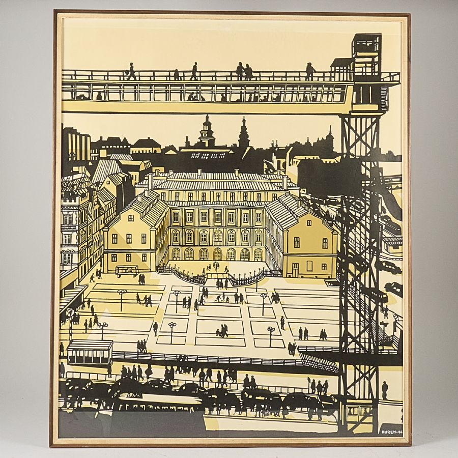 Svenolov Ehrén (1927-2004), Sweden. Signed, dated -66, Katarina Elevator (Katarinahissen), Stockholm. Image dimensions: 85x69 cm, outer dimensions including frame: 87x72,