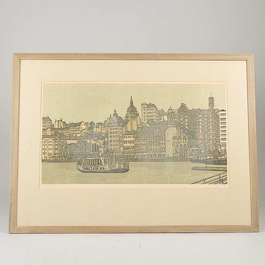 Svenolov Ehrén (1927-2004), Sweden. Signed, numbered 100/150, dated -62, Djurgården 6. Image dimensions: 31x55 cm, outer dimensions including frame: 53x73 cm,