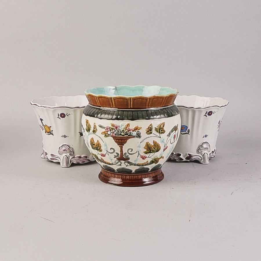 Ett par, Rörstrand "Rörstrandia", + 1 Majolika. Diameter: 20 cm, höjd: 15-19 cm