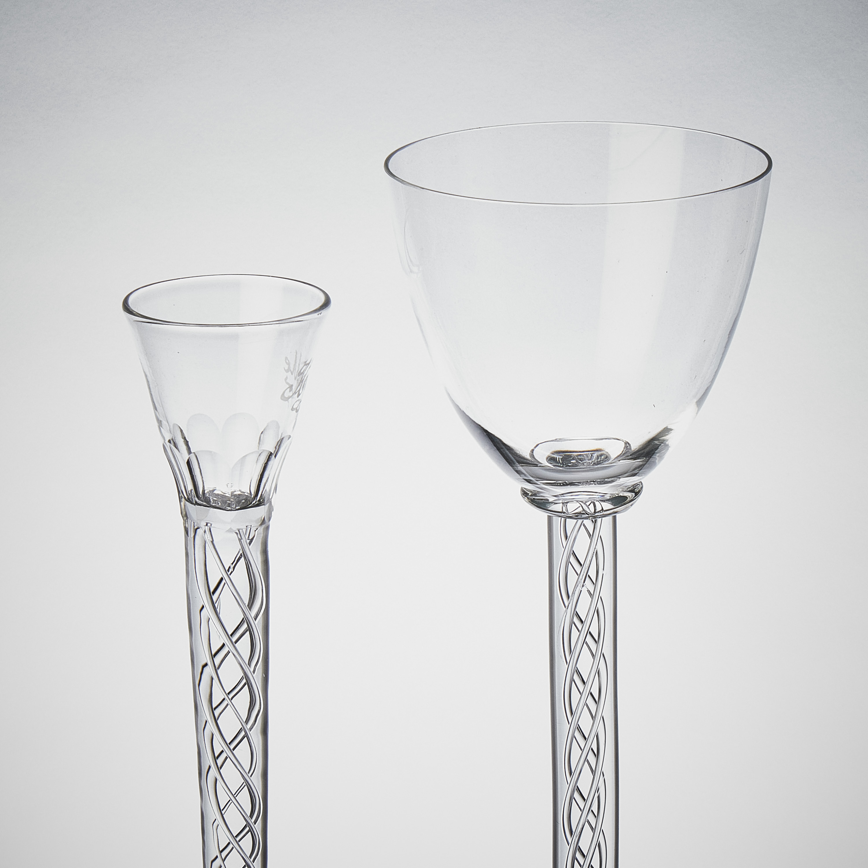 2 st, Vinglas & snaps, Längd: 8-12cm. Djup: 8-12cm, höjd: 28,5-33cm, en graverad