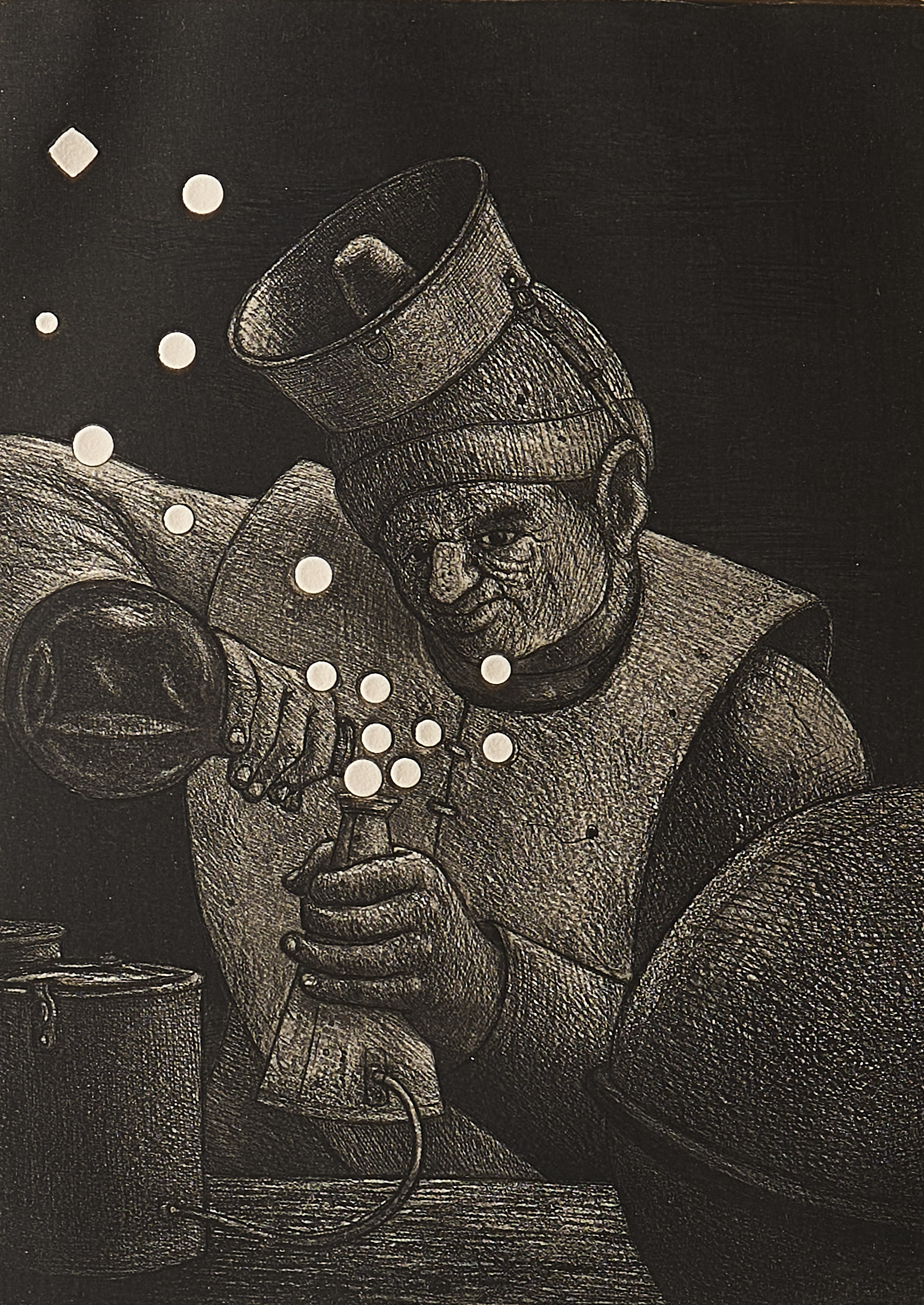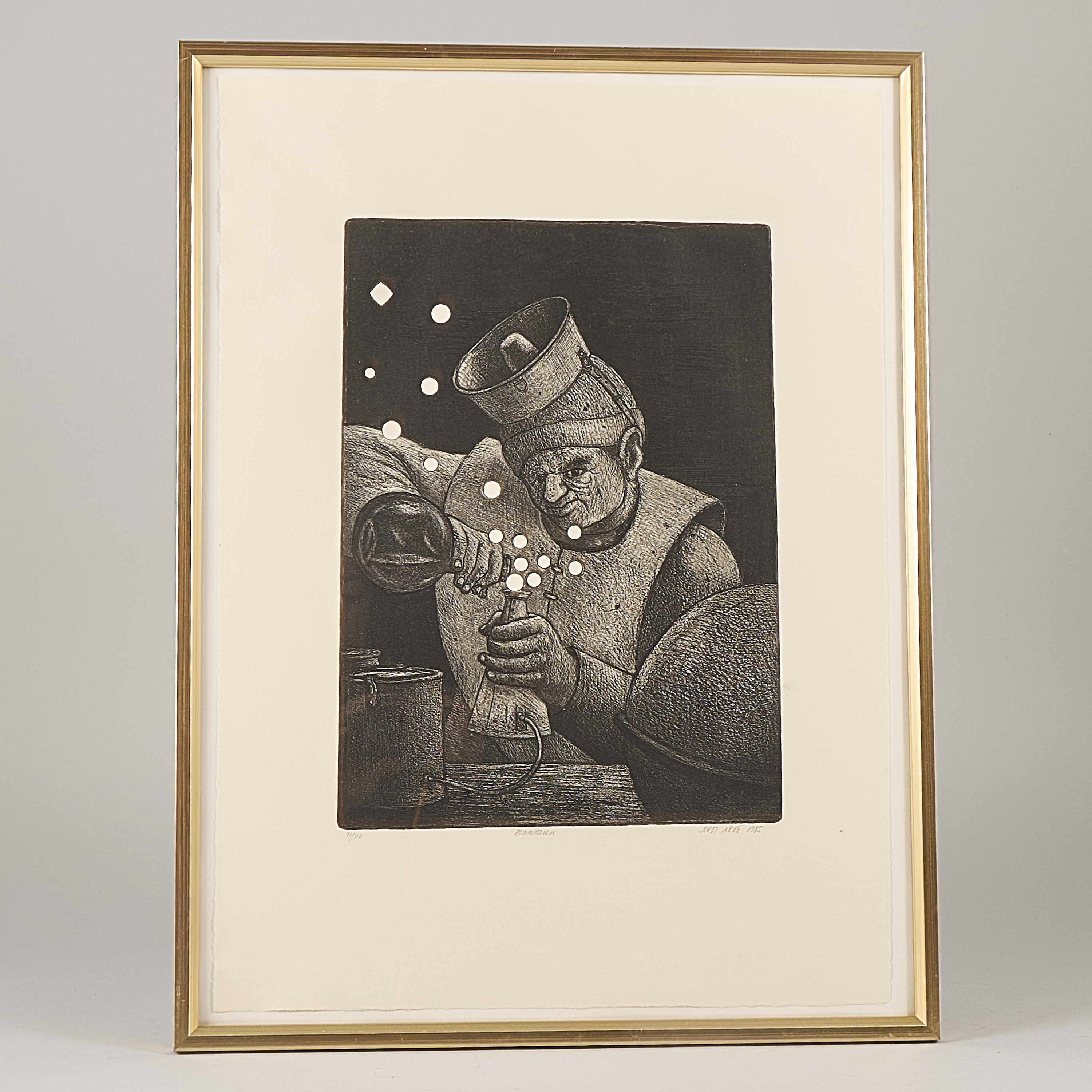 Jordi Arkö (f. 1951), Sverige. ”Blandaren”. Signerad, numrerad 91/110, daterad1985. Bladets mått: 53x38 cm, yttermått inklusive ram: 57x44