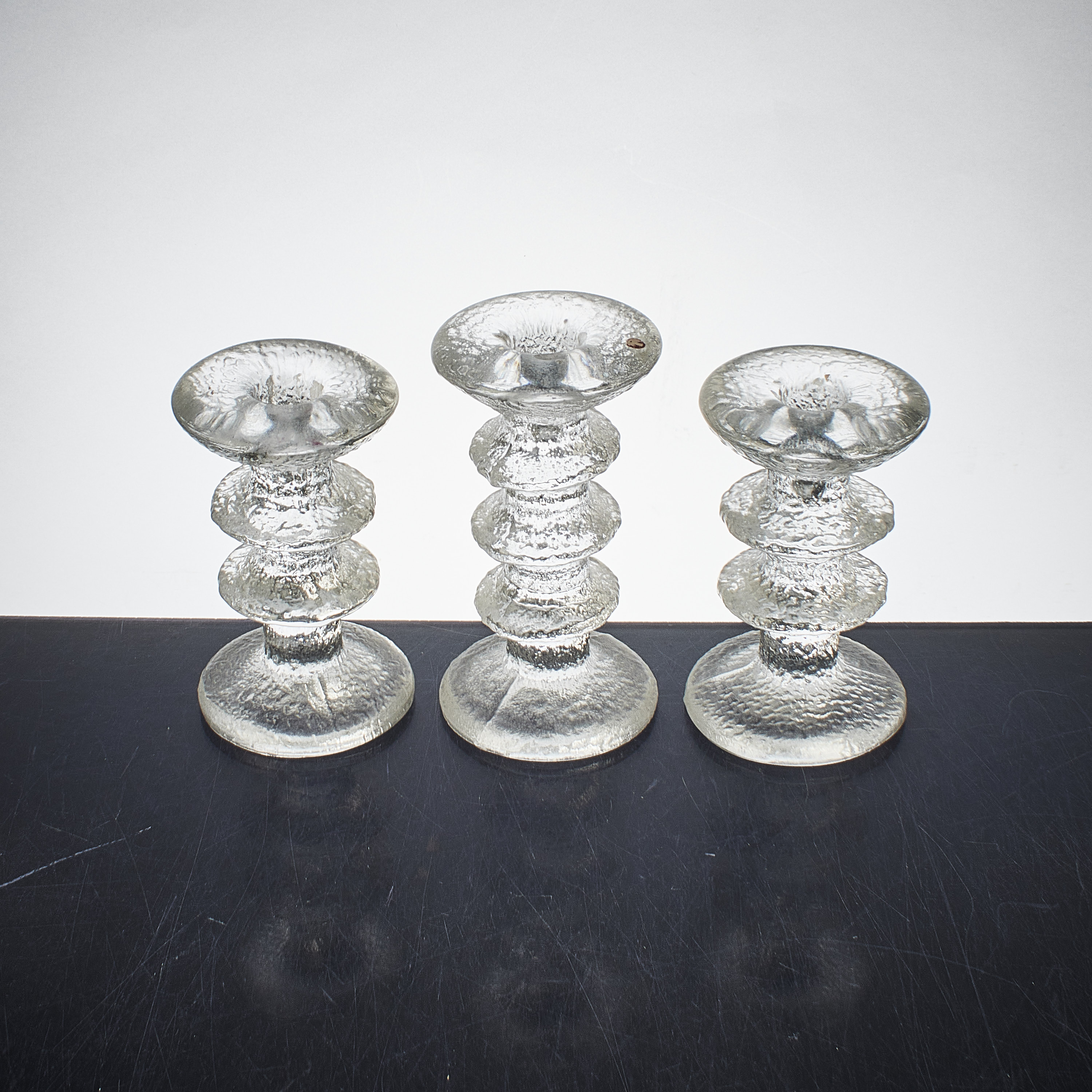 3 st, Festivo, Timo Sarpaneva (1926-2006), Finland. Iittala, 1900-talets andra hälft (formgivna 1967), pressglas. Höjd: 12-13 cm