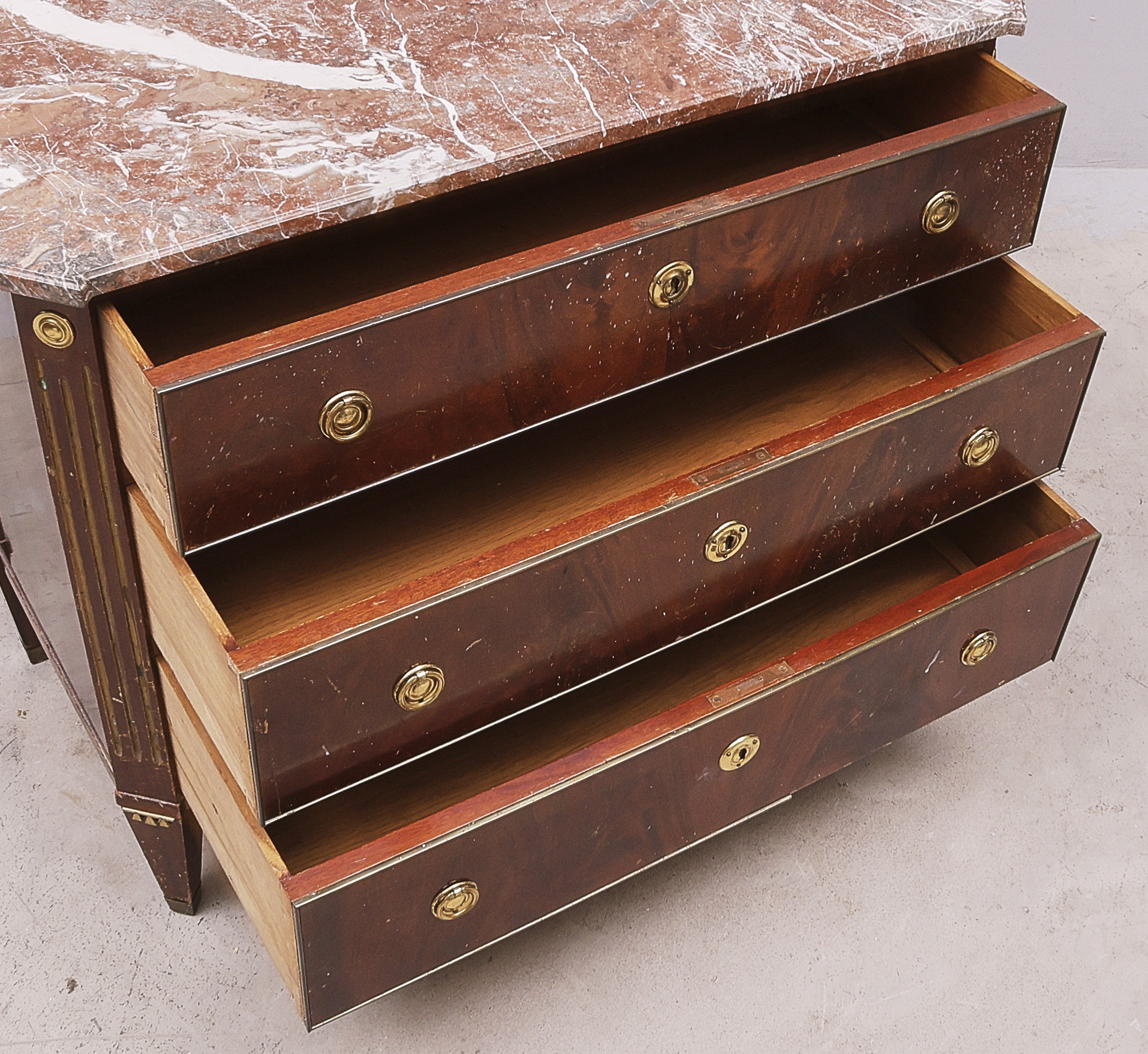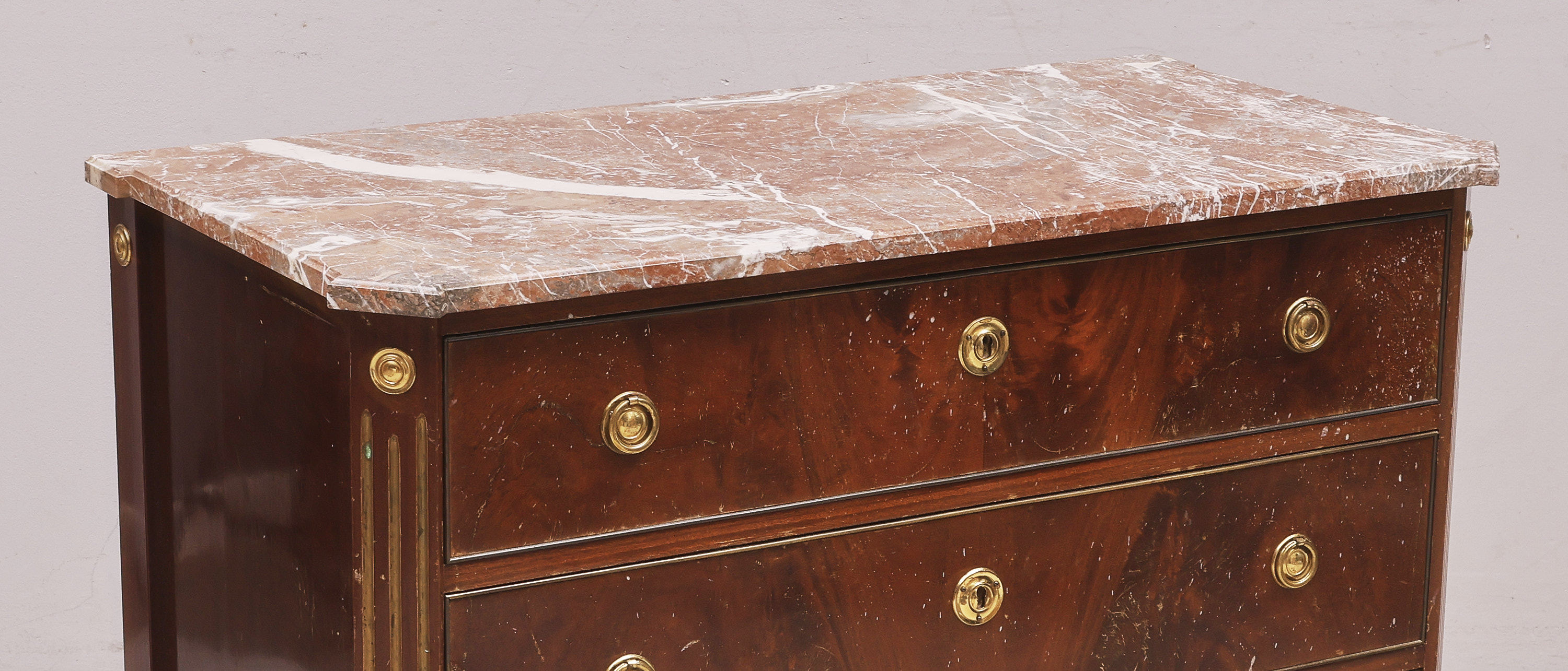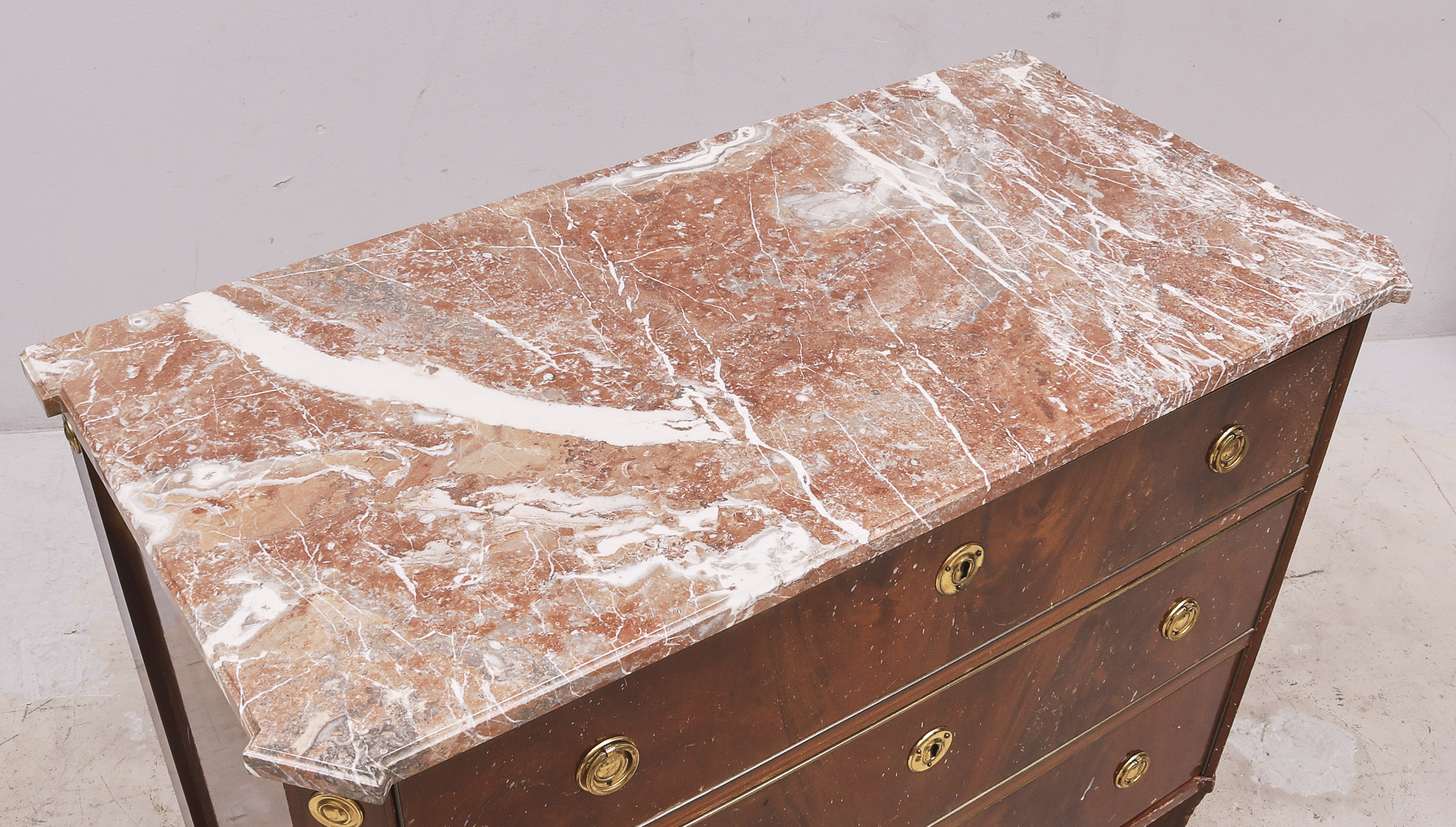 med stenskiva, sengustaviansk stil, tre lådor, mah..//