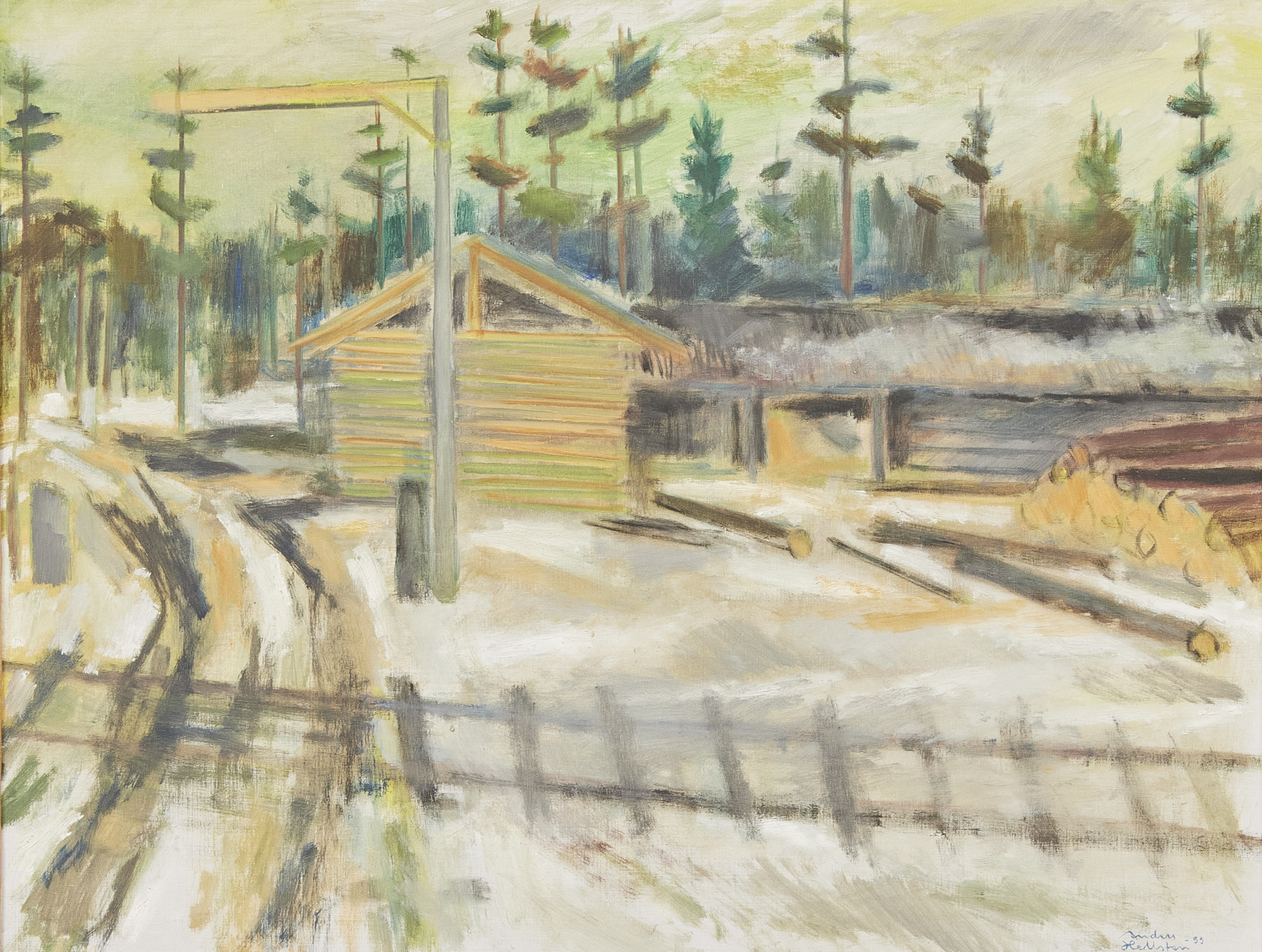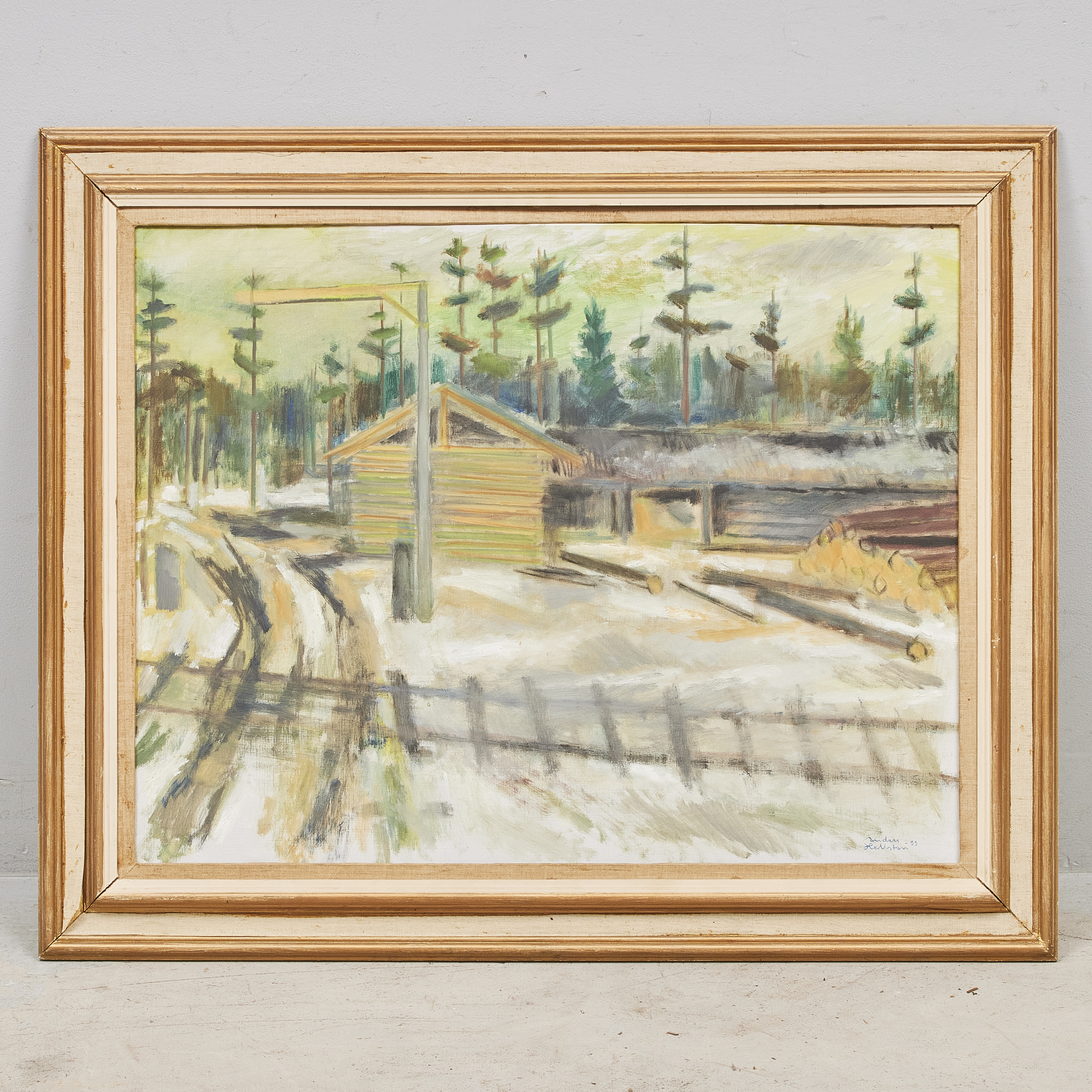 Anders Hellsten (1916-1990), Sverige. Signerad, daterad - 53, gårdslanskap. Olja på duk 65x82 cm, yttermått inklusive ram: 84x102 cm
