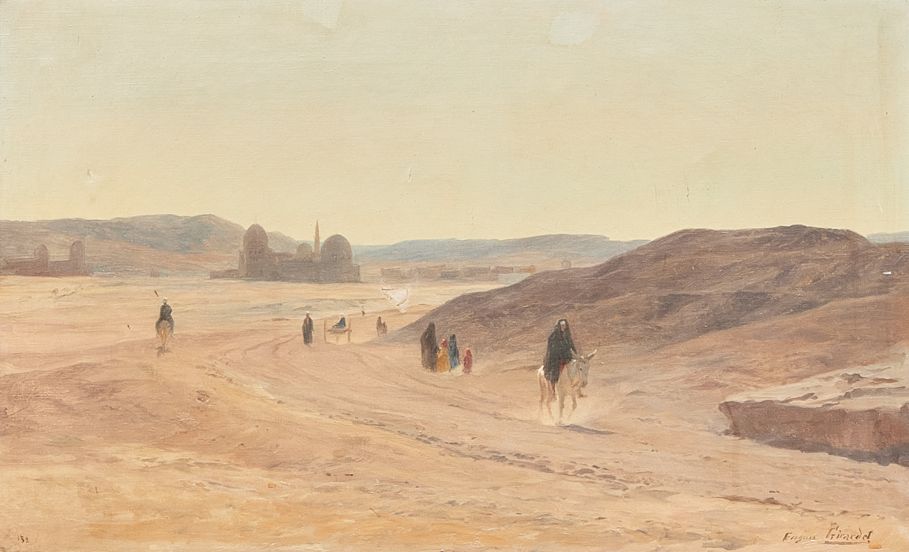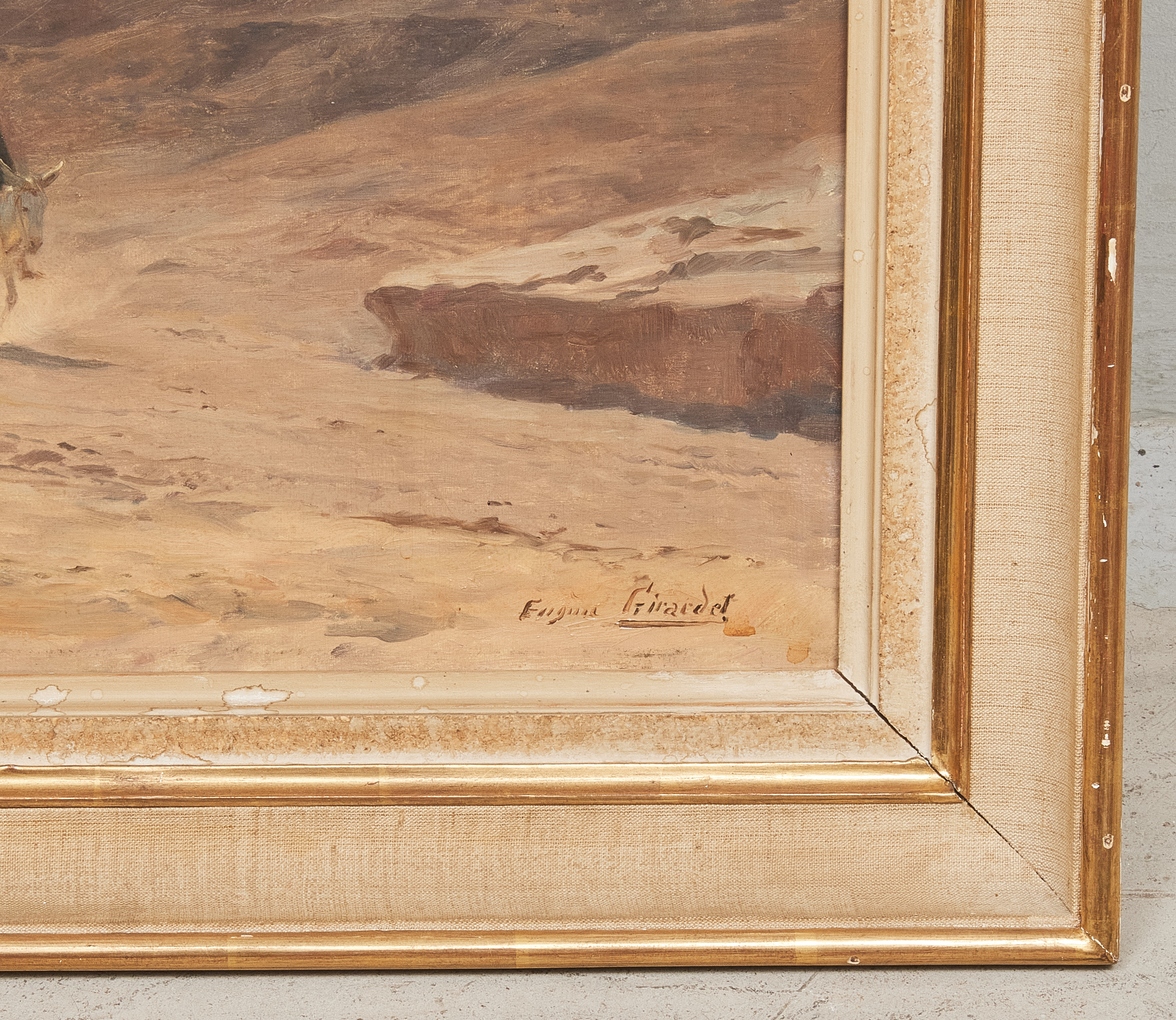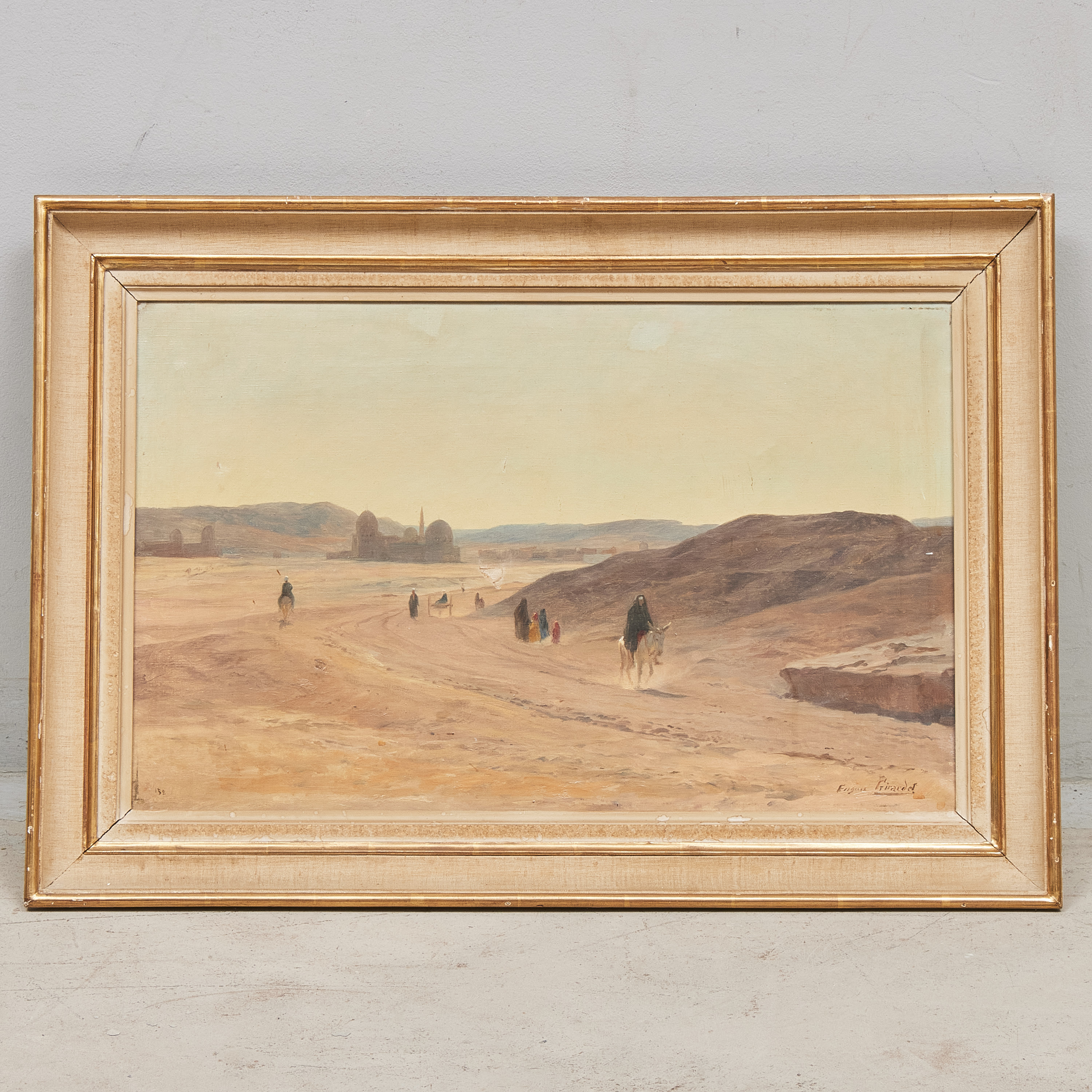 Eugène Girardet (1853-1907), Frankrike. Scen från Nordafrika. Signerad. Olja på duk, 38x60 cm, yttermått inklusive ram: 52x76 cm, skadad duk