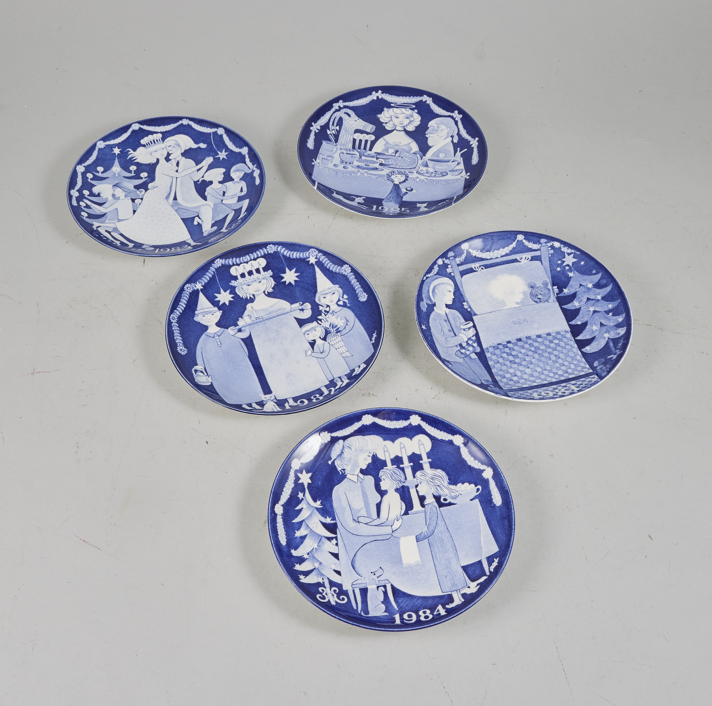 5 st, Stig Lindberg (1916-1982), Sverige. Gustavsberg, 1981-1985. Diameter: 22 cm