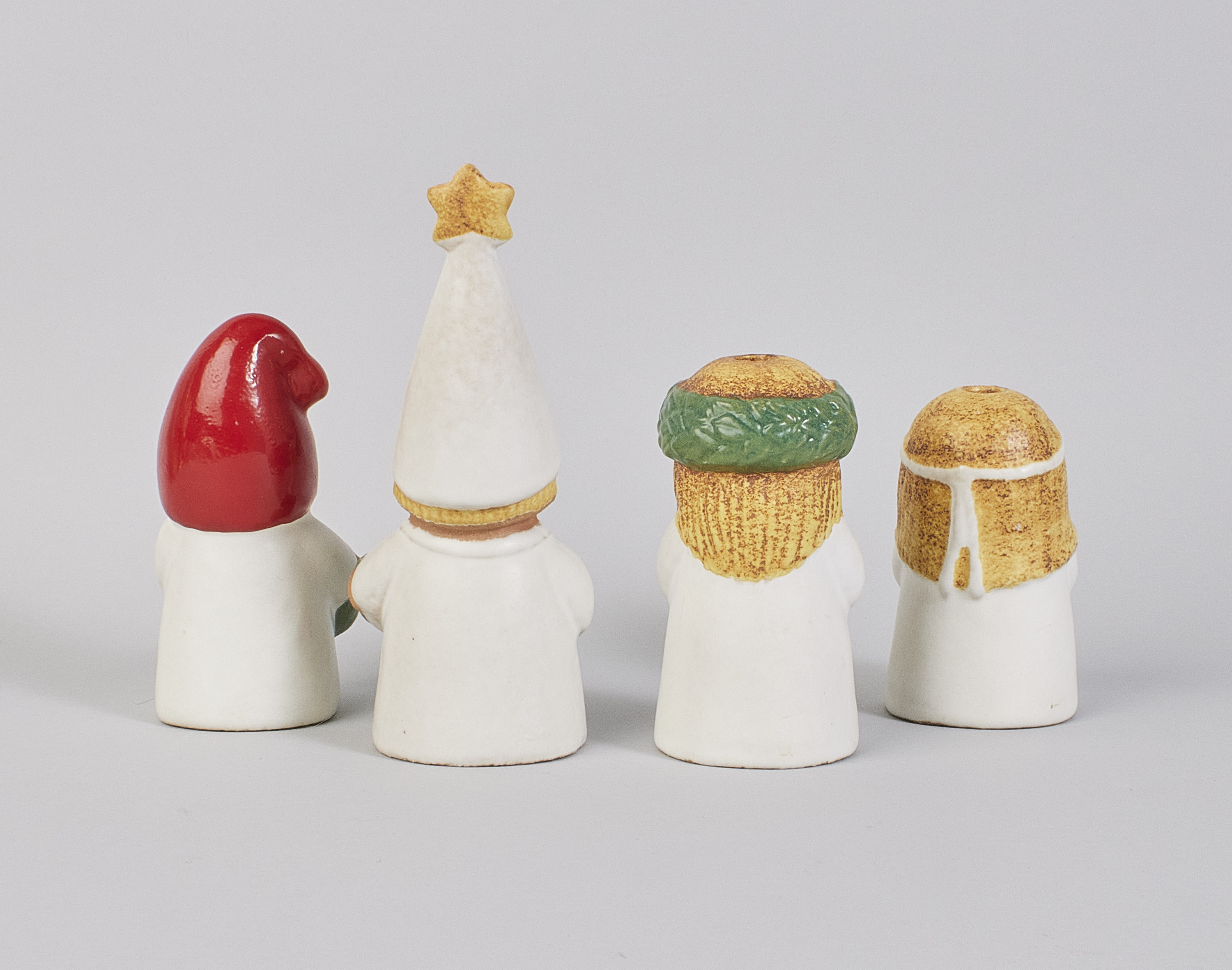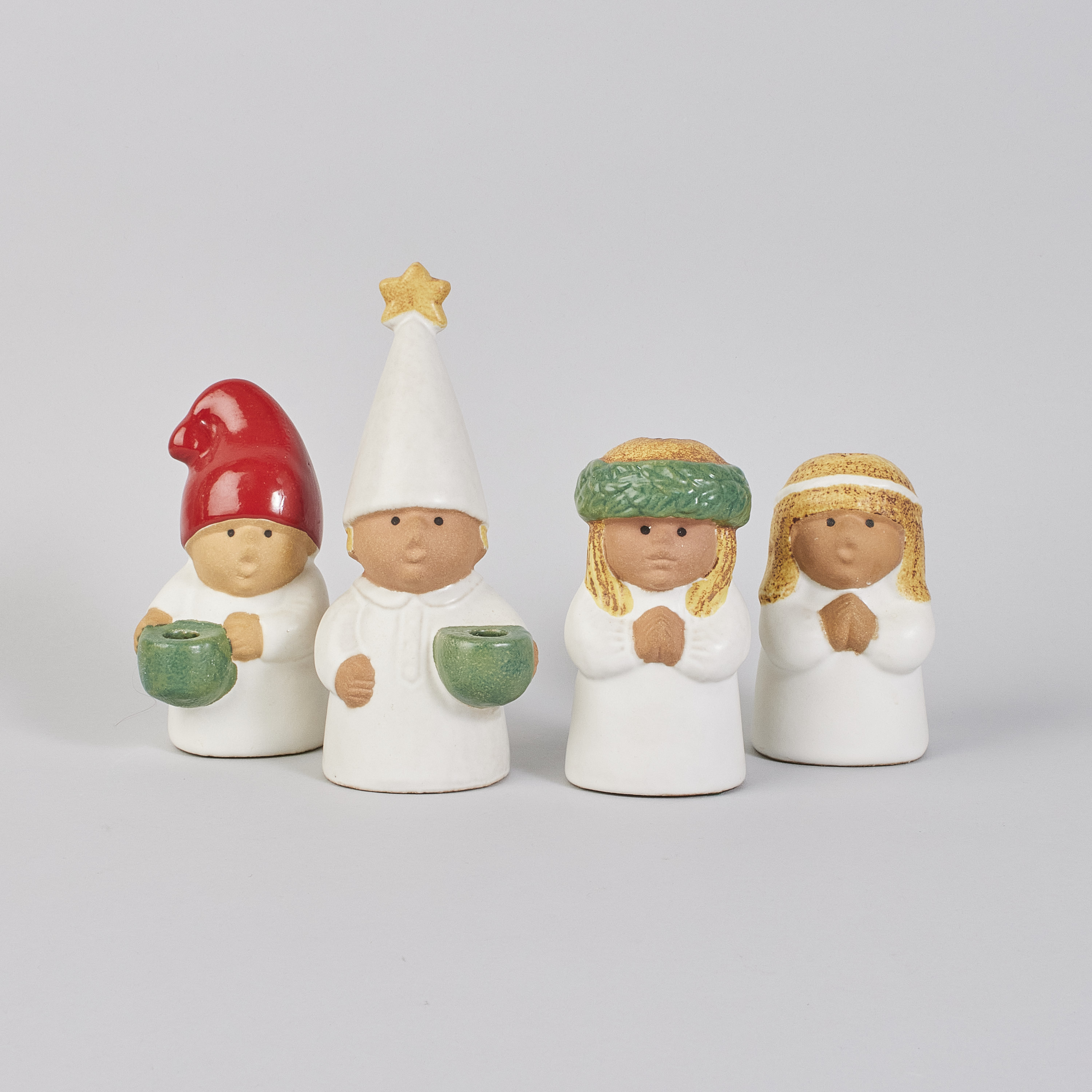 4 delar, Lisa Larson (1931-2024), Sverige. "Luciatåg" ur Advent, Rörstrand. Lucia, Tärna, Stjärngosse och Tomte. Stengods. Höjd: 10-17 cm