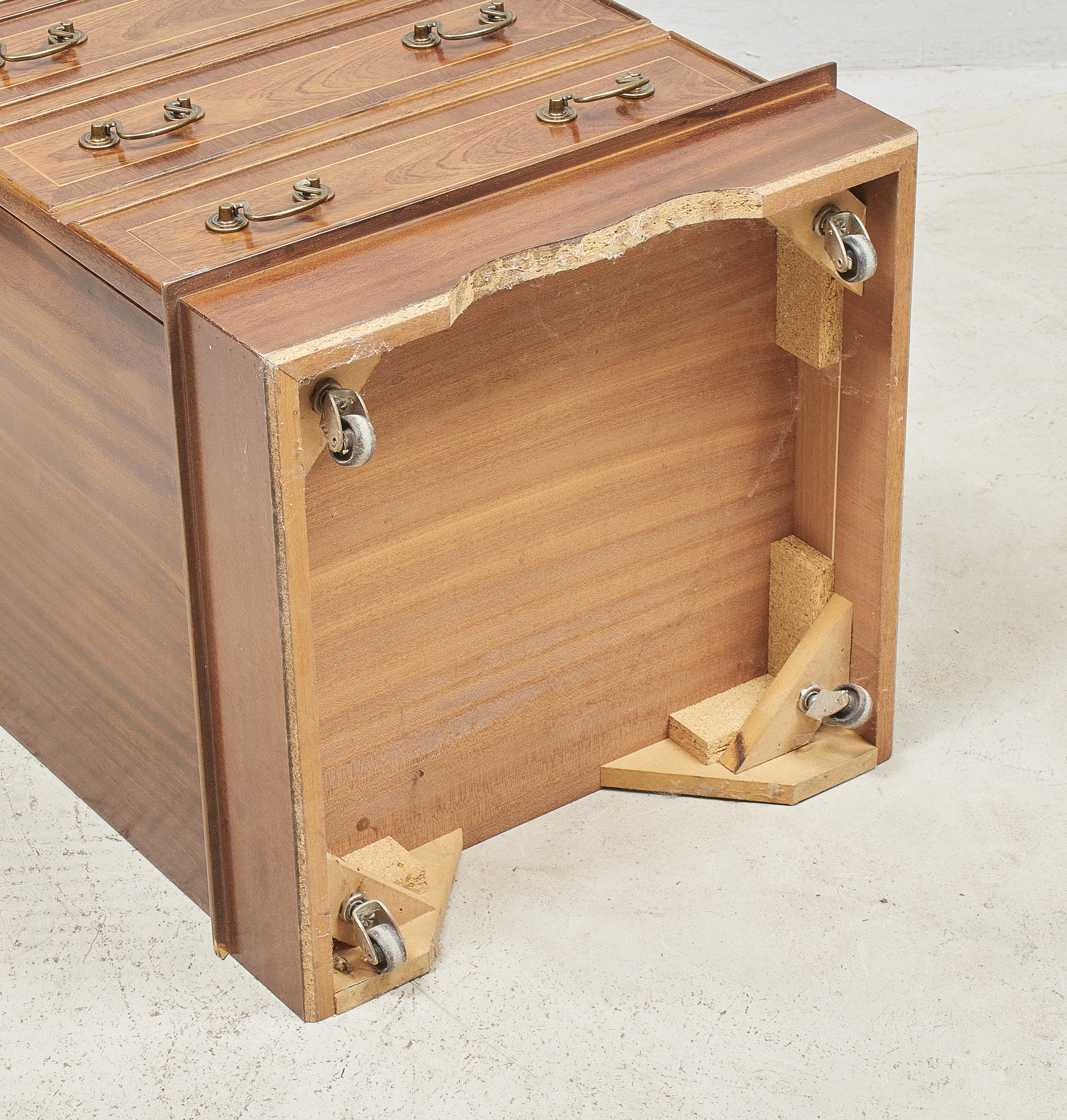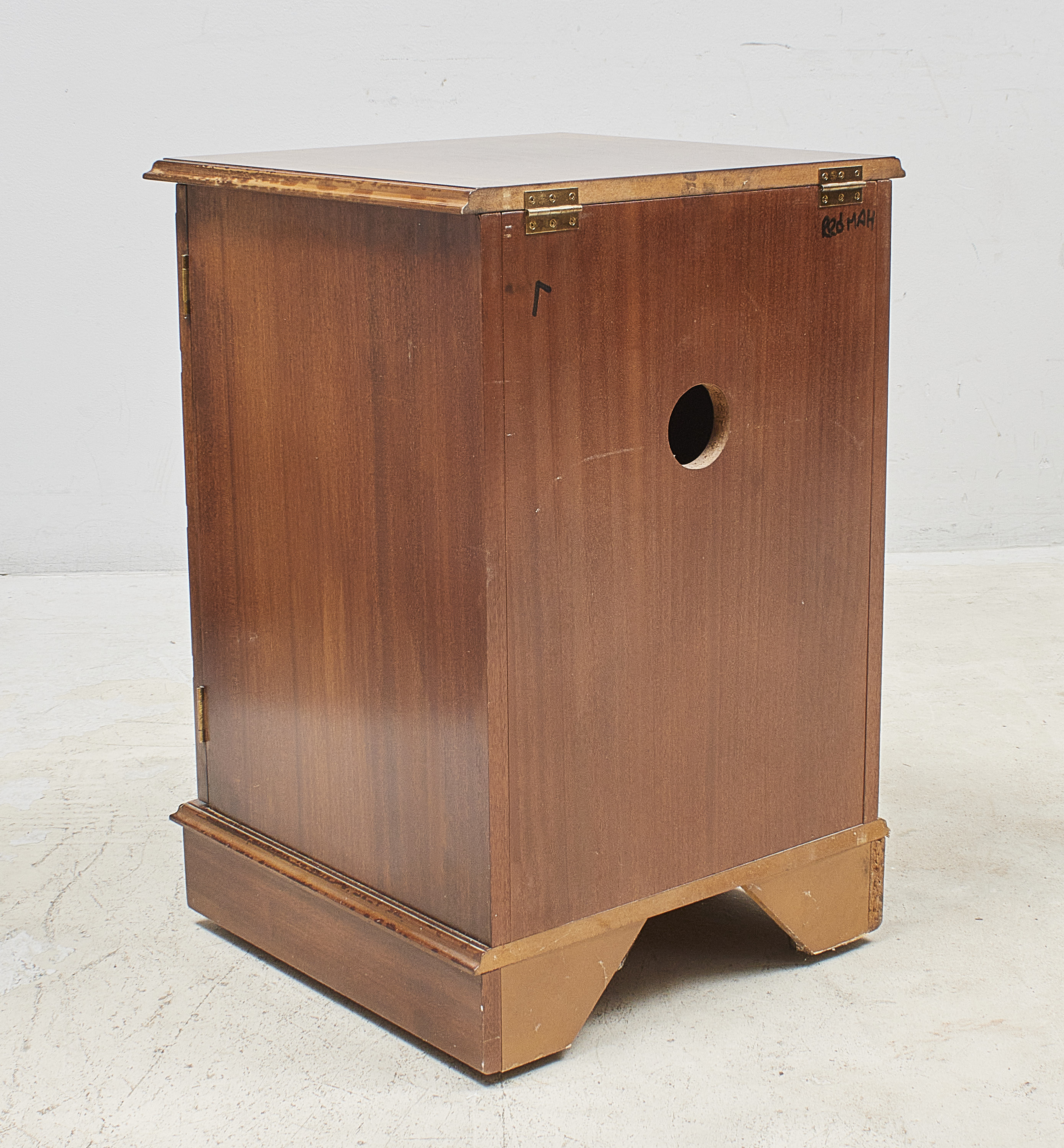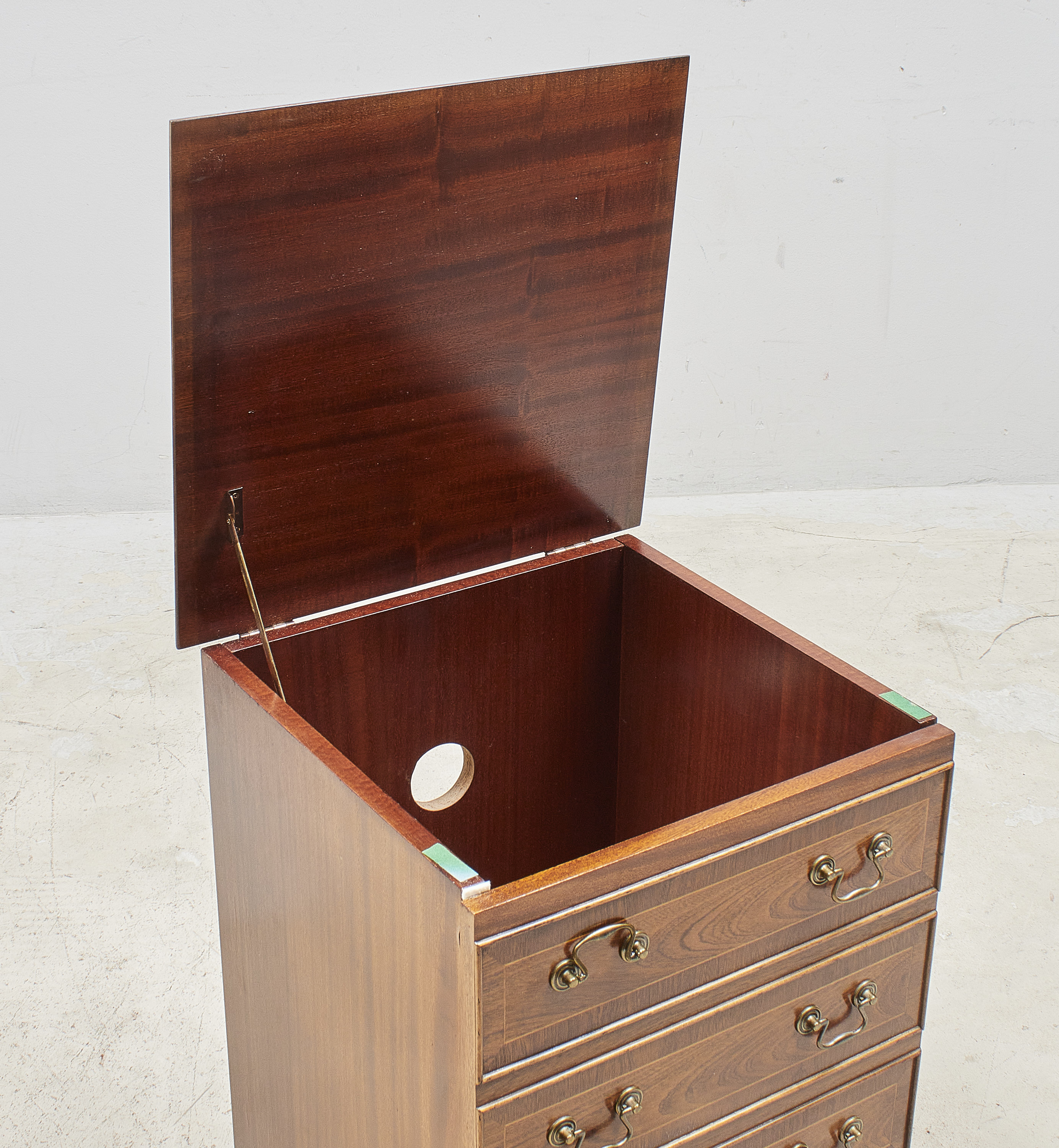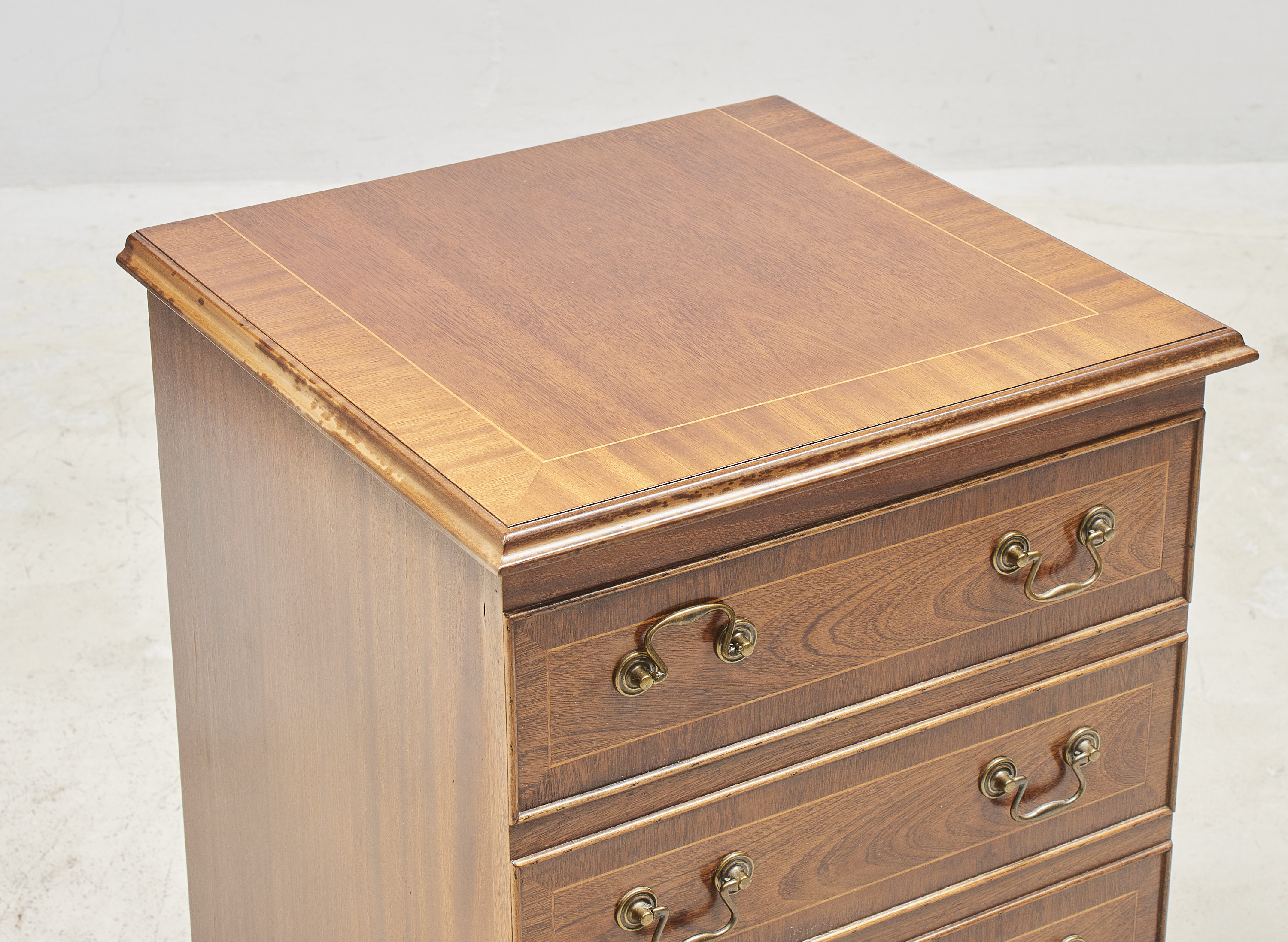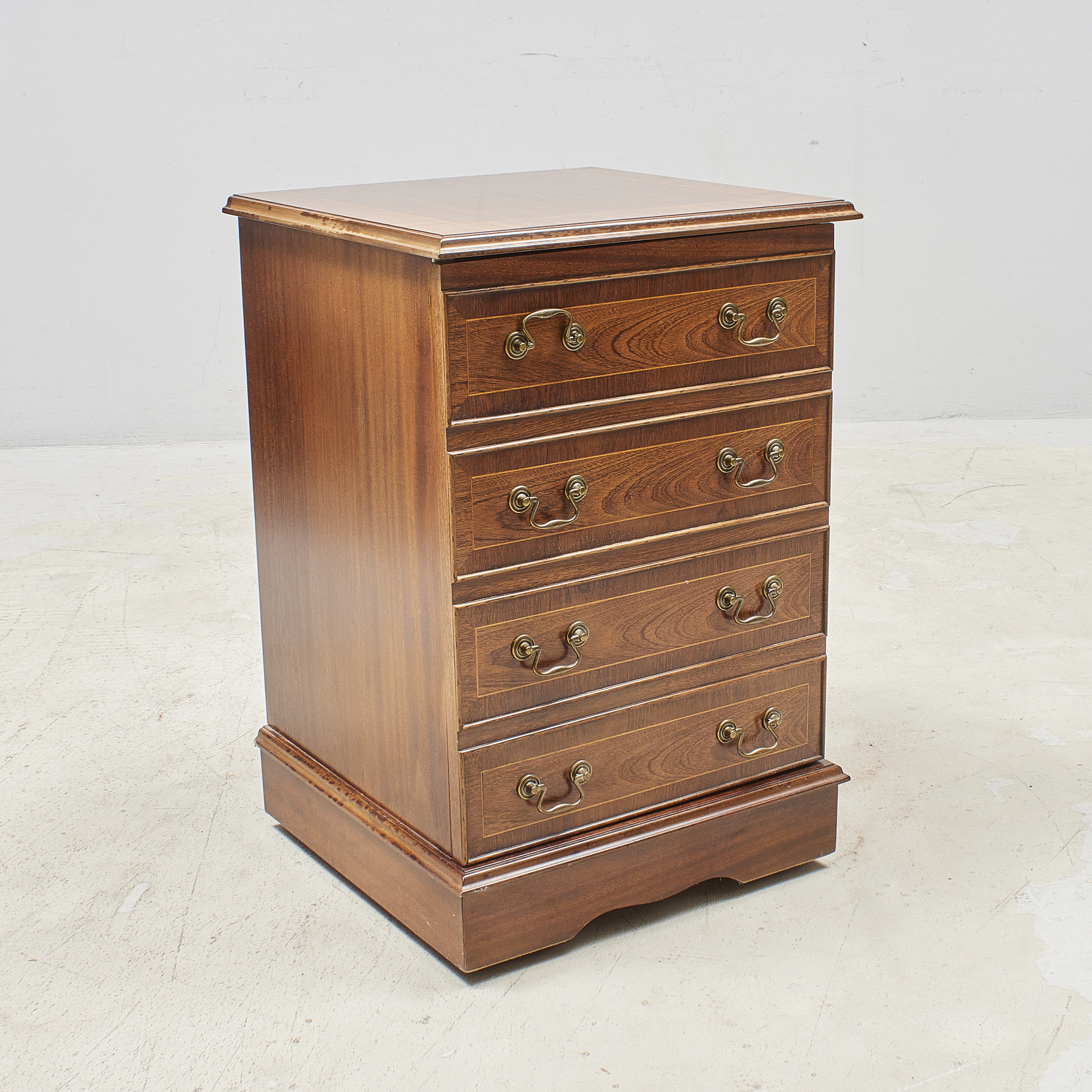 Engelsk stil, 4 lådor, mahogny. Bredd: 48 cm. Djup: 46 cm. Höjd: 72 cm