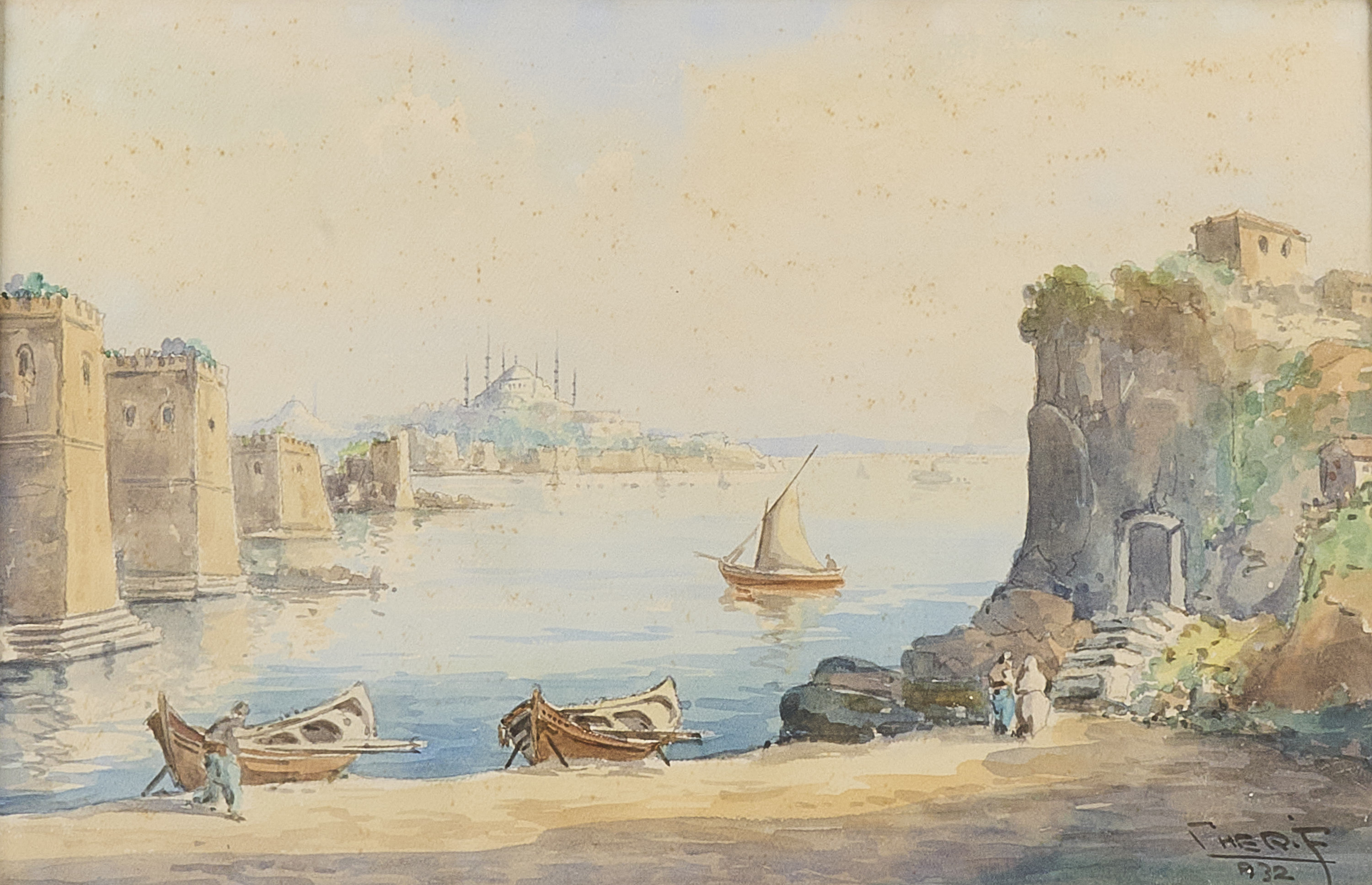 Oidentifierad konstnär. Signerad, daterad -32, motiv från Turkiet. Akvarell, bildmått: 26x39 cm, yttermått inklusive ram: 31x45 cm