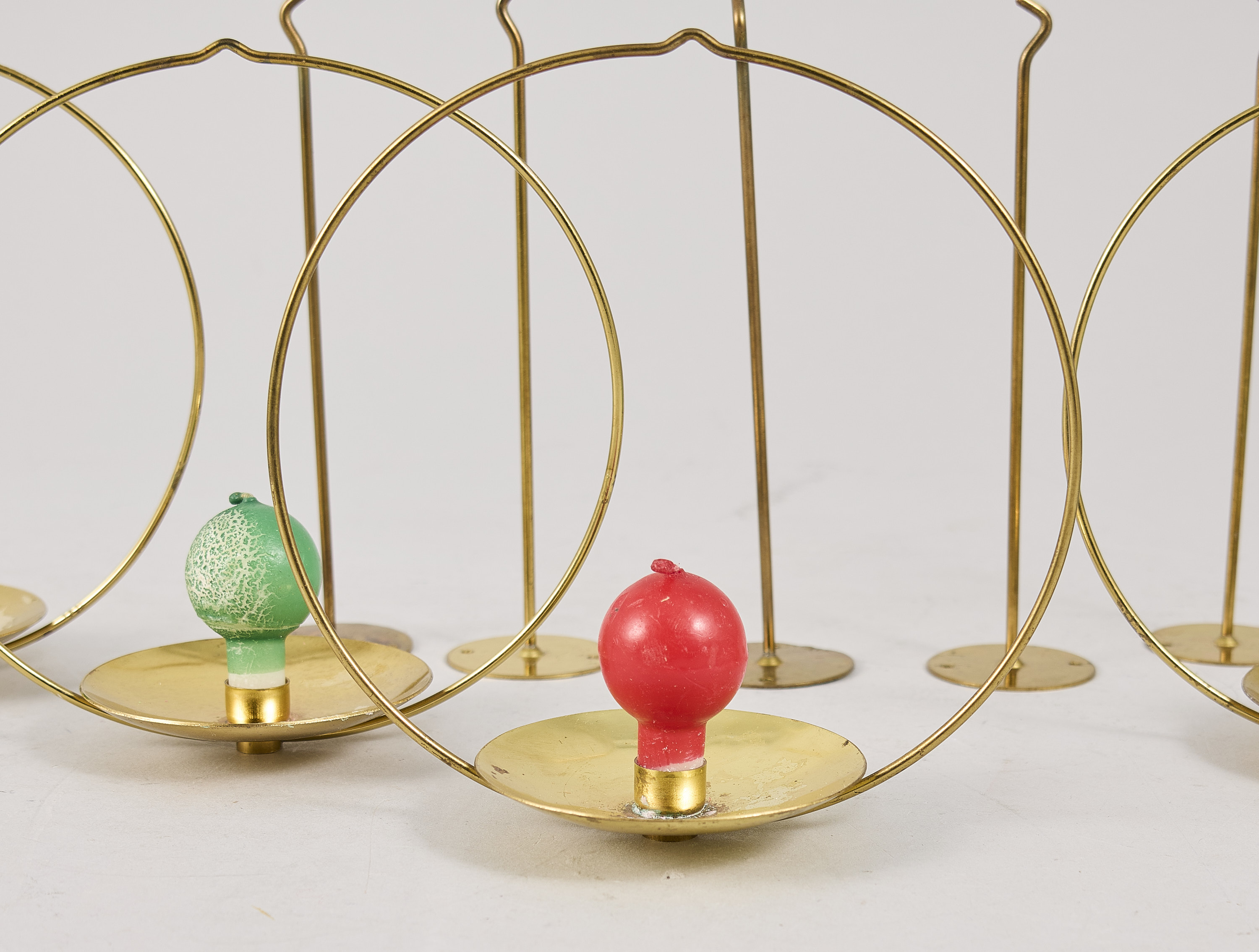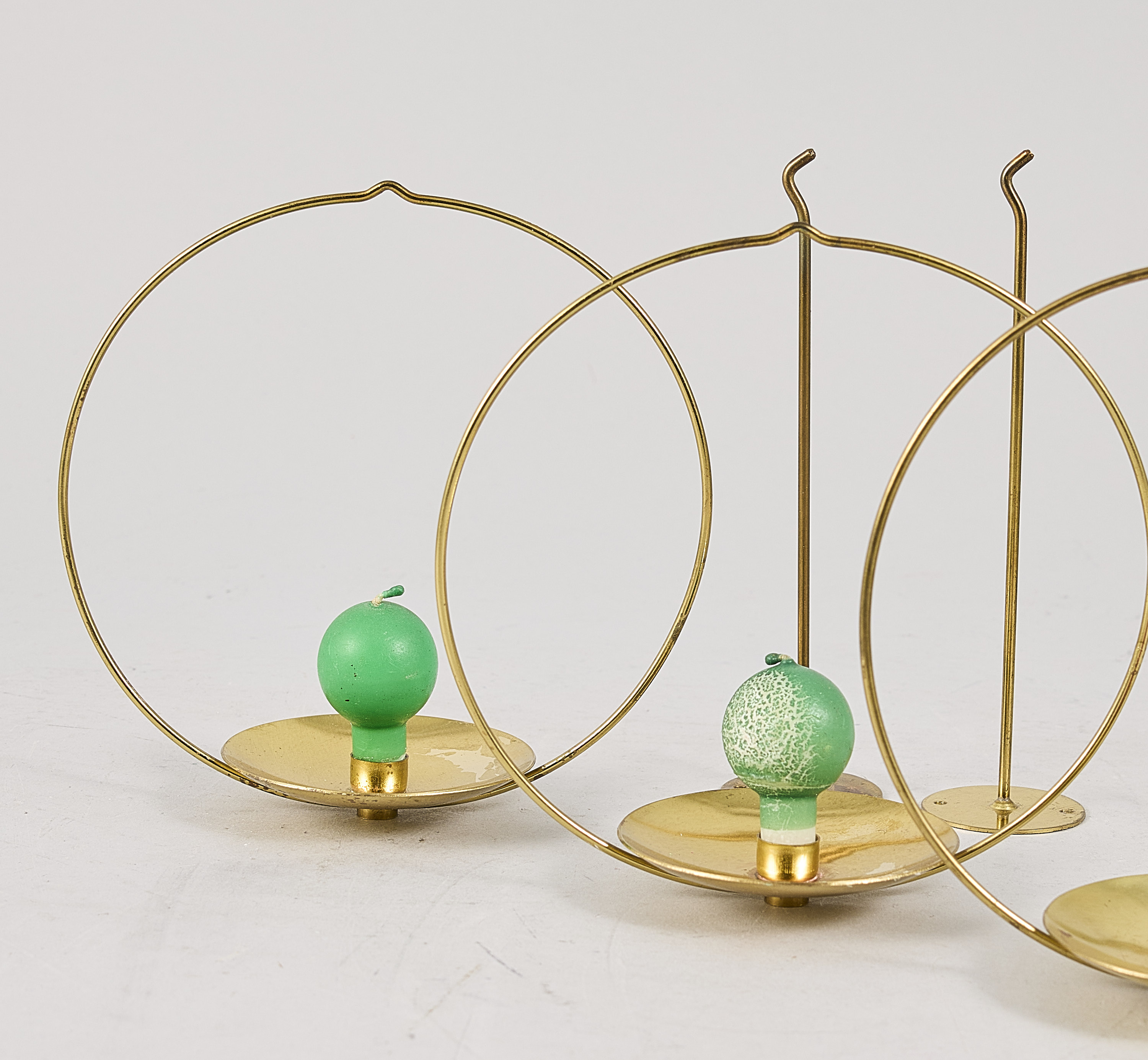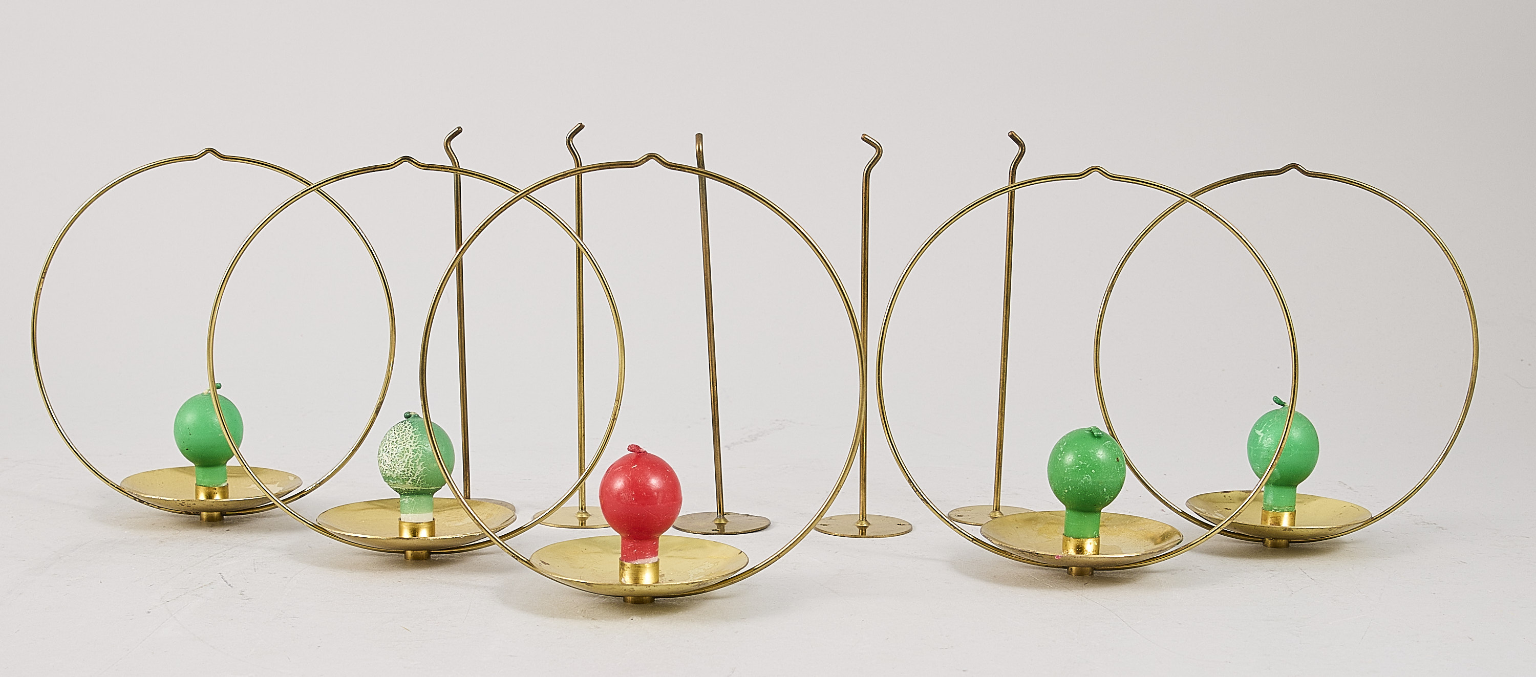 5 st Kaija Aarikka (1929-2014), Finland, "Piirileikki", cirkelformade ljushållare i mässing, stämpelmärkta. Diameter: 20 cm. Djup: 20 cm ca