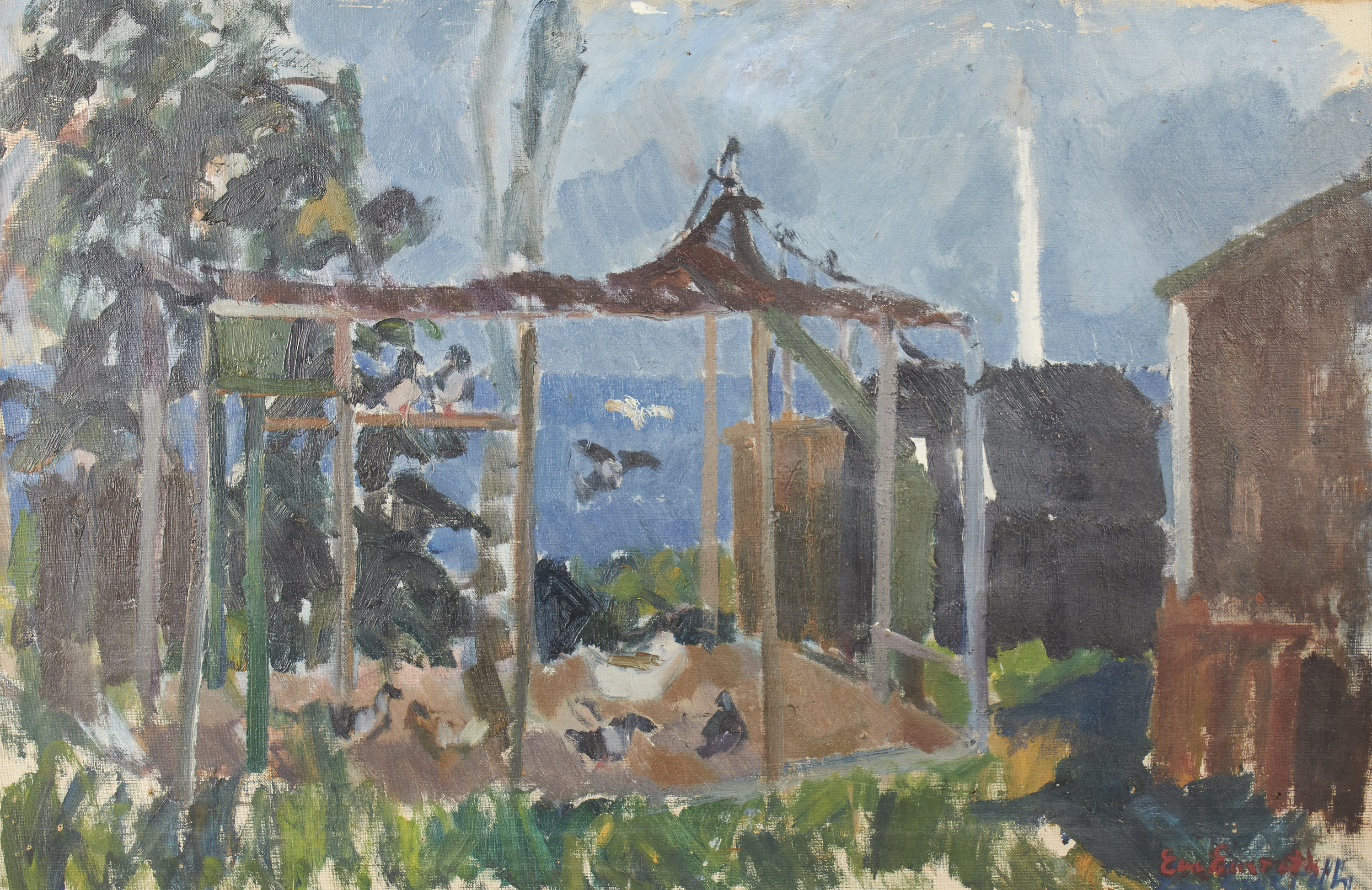 Alfred Thörne (1850-1916), Sverige. "Sjöbodar". Si..//