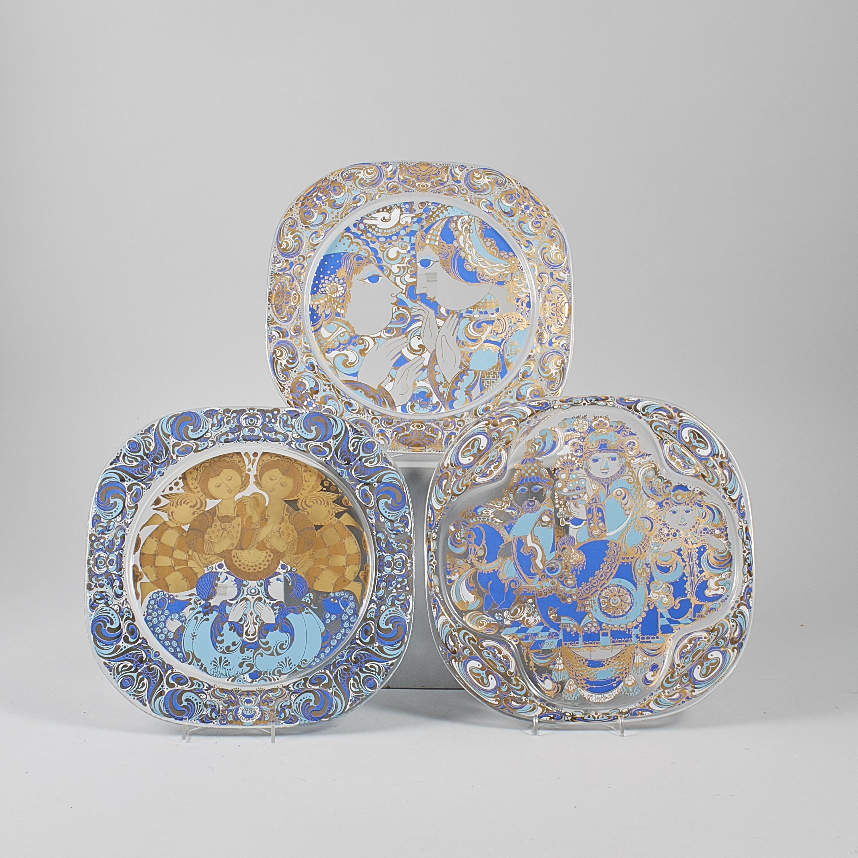 3 st, Björn Wiinblad (1918-2006), Danmark. Glas, Rosenthal, 28,5x28,5