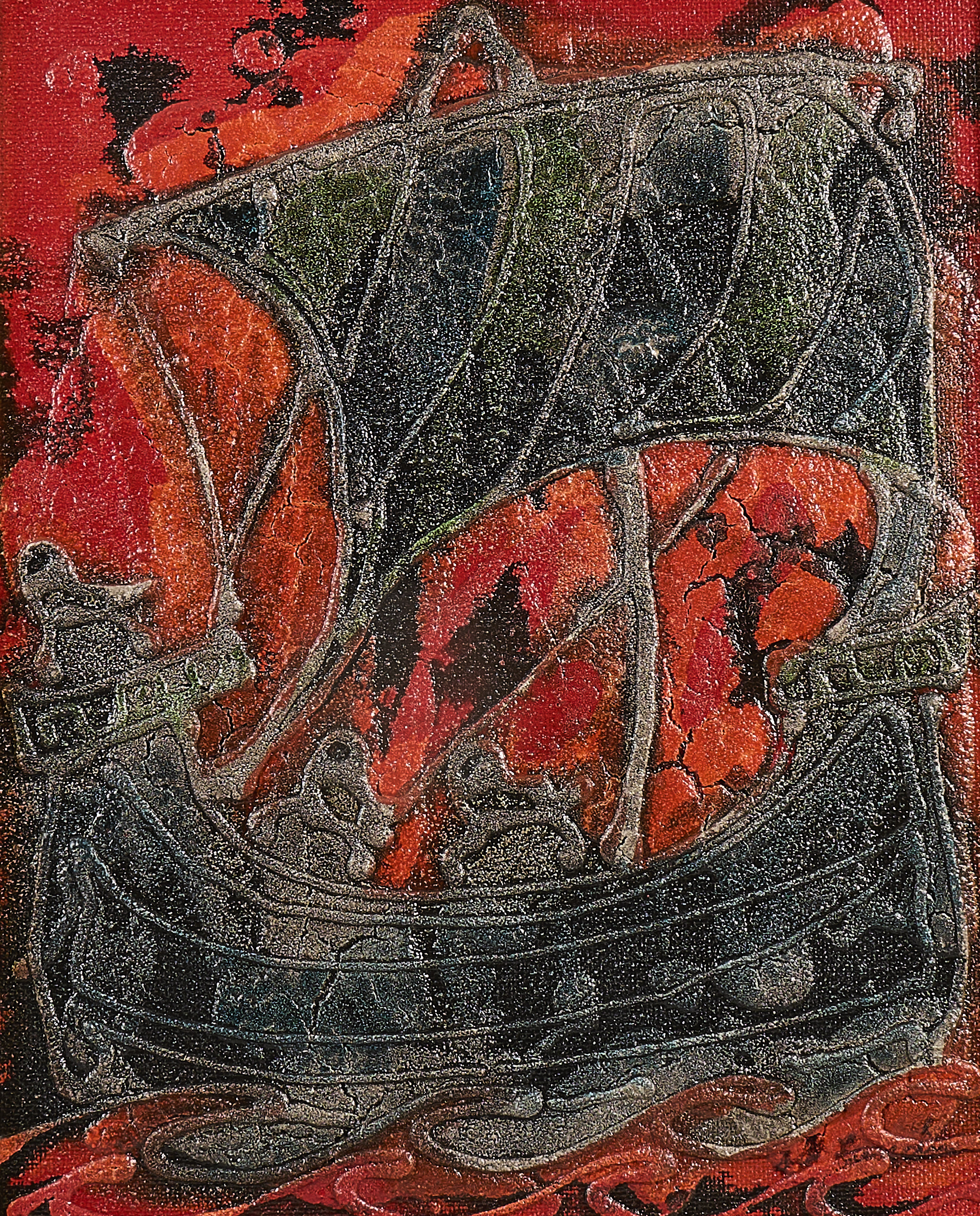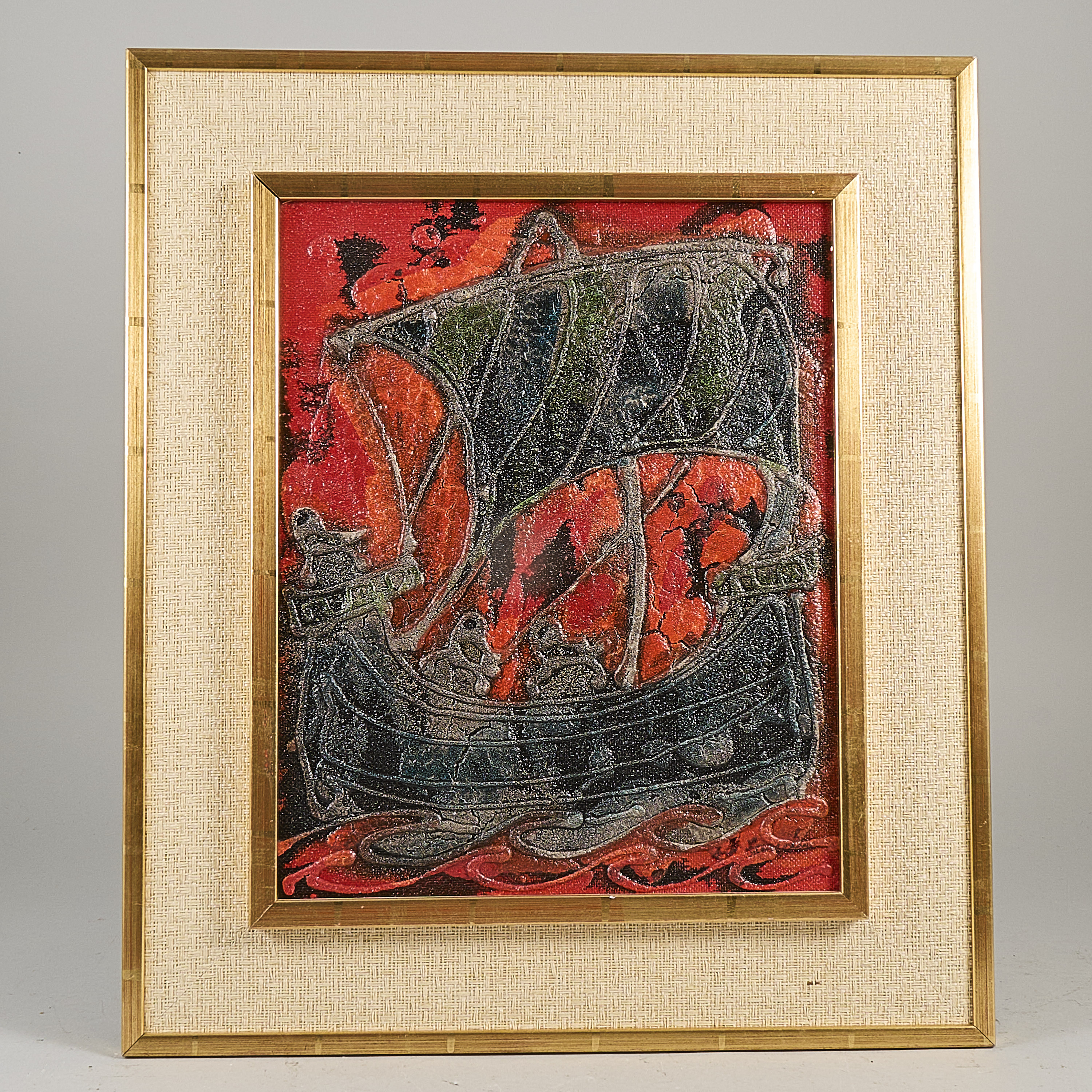 Marianne Lundin, skepp. Signerad, blandteknik, 40x32 cm, yttermått inklusive ram: 59x51 cm