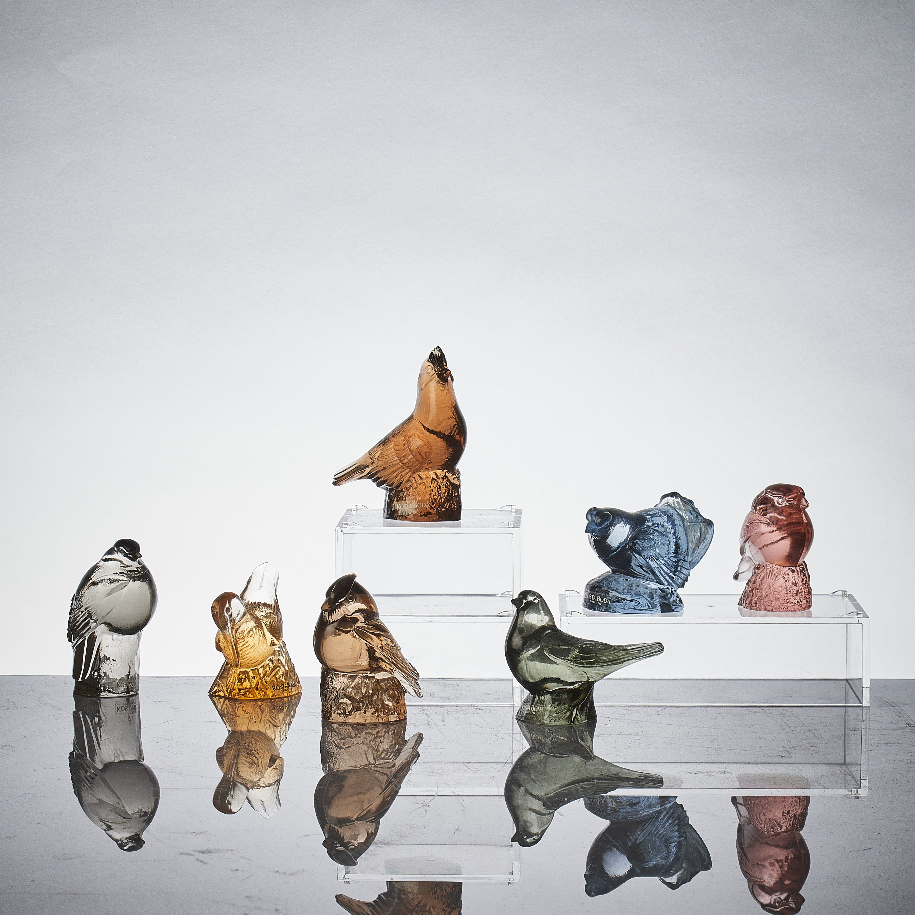 7 st, Fåglar, WWF, Svenskt Glas, Paul Hoff (f. 1945), Sverige. Höjd: 6-8,5