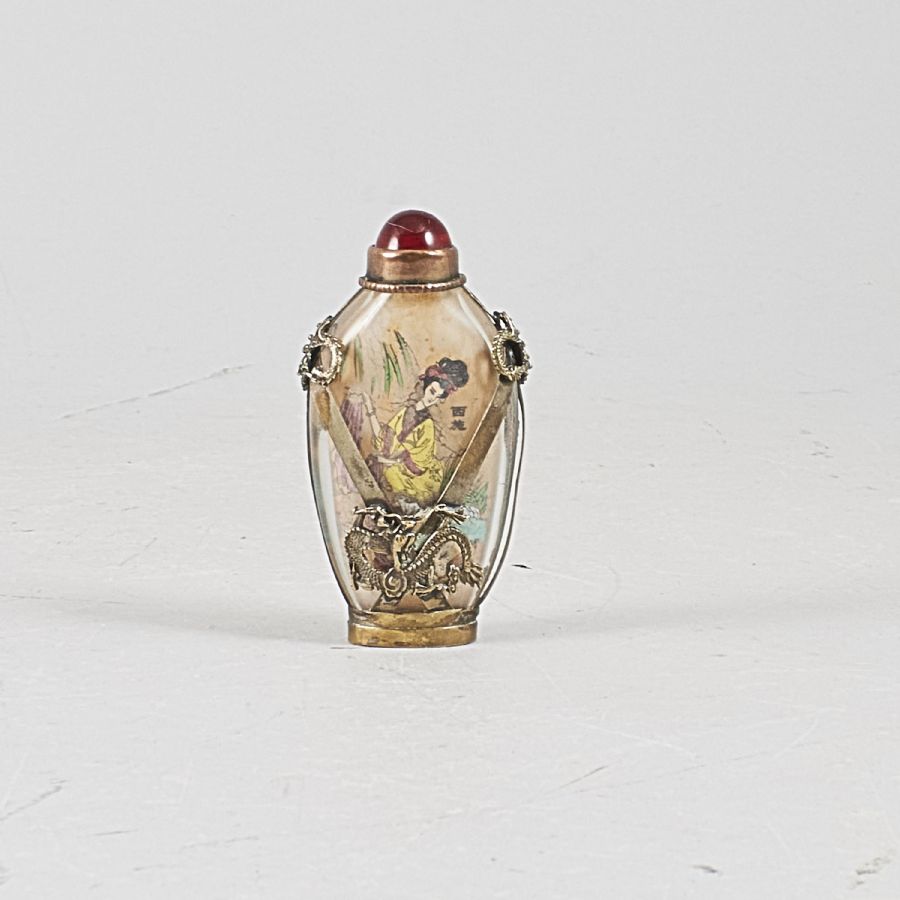 China, 20th century, glas med metallhölje föreställande en drake. Height: 9 cm, mindre spricka.