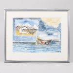 unidentified artist. Kustlandskap med båtar. Signe..//