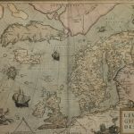 Handkolorerad karta över Skandinavien, norra Atlan..//