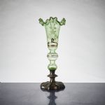 omkring 1900. Glas / silver on copper. Höjd: 34 cm